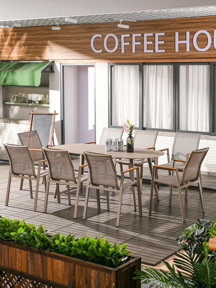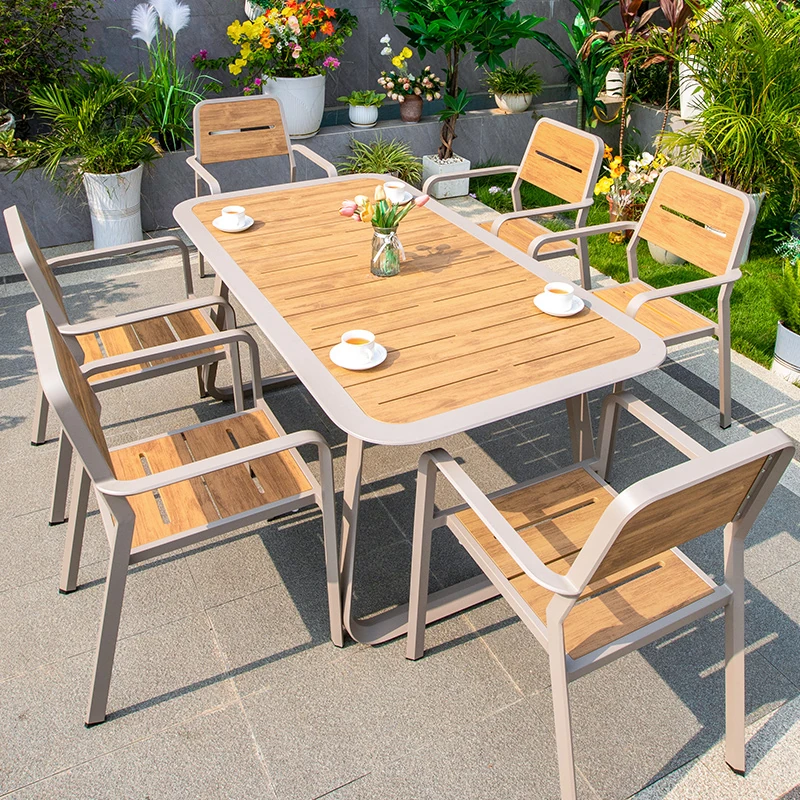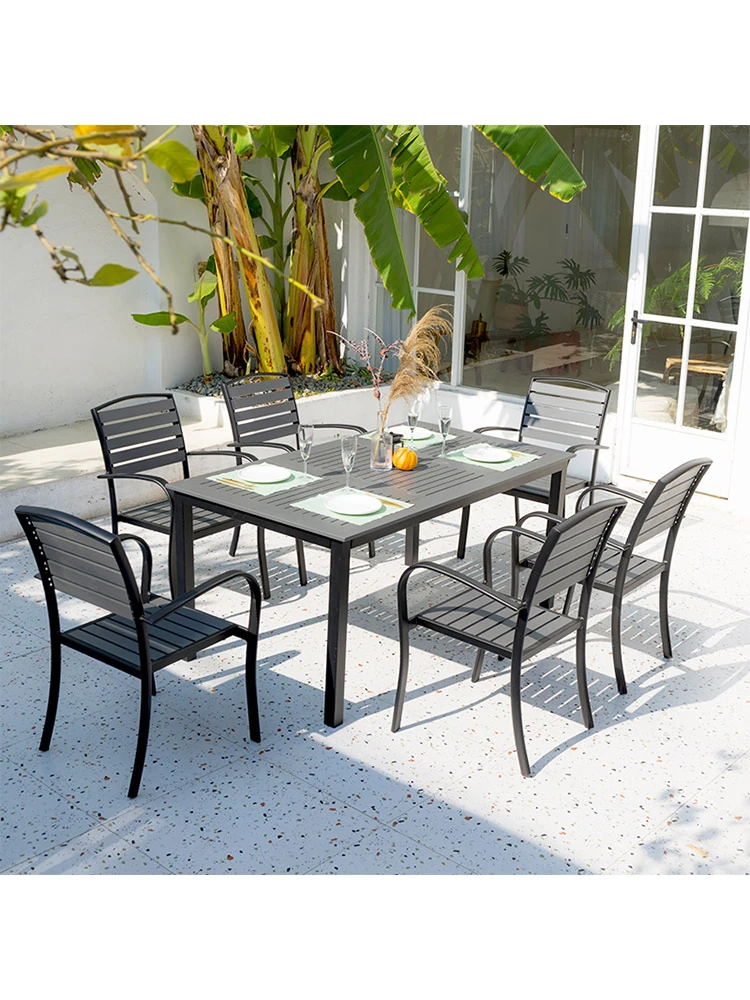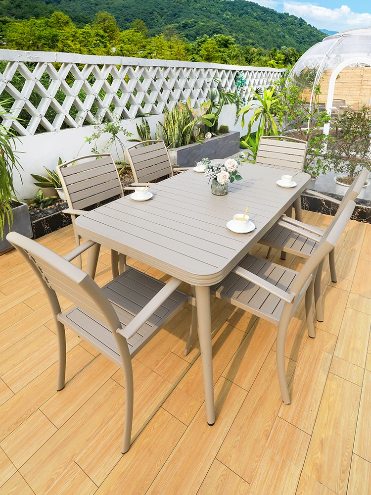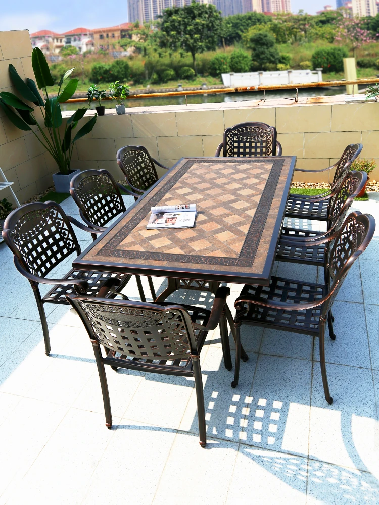 Outdoor Patio Dining Set - Waterproof Aluminum Alloy Long Table and Chairs for Home Villa Garden - Perfect for Leisurely Outdoor Spaces