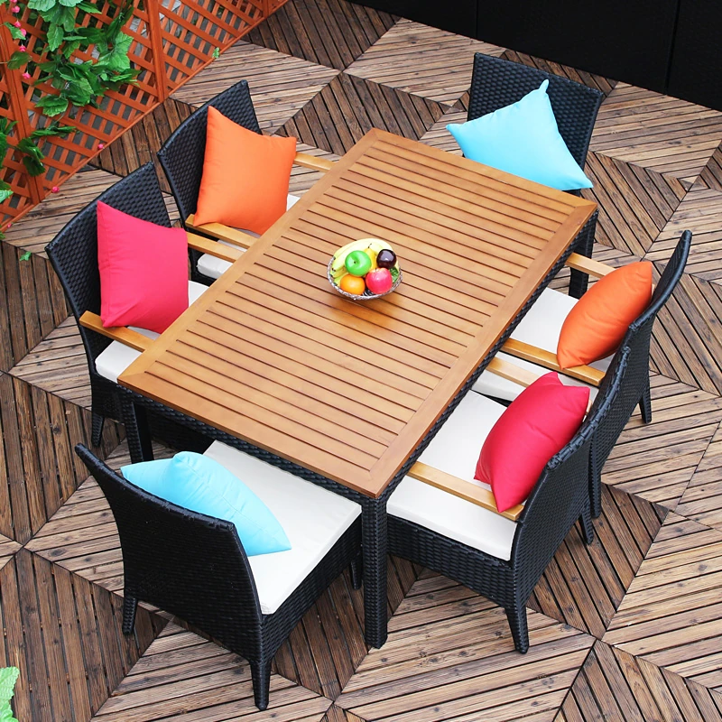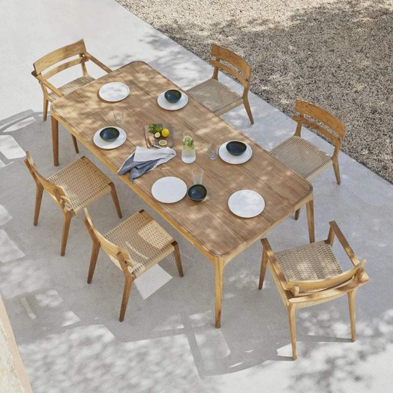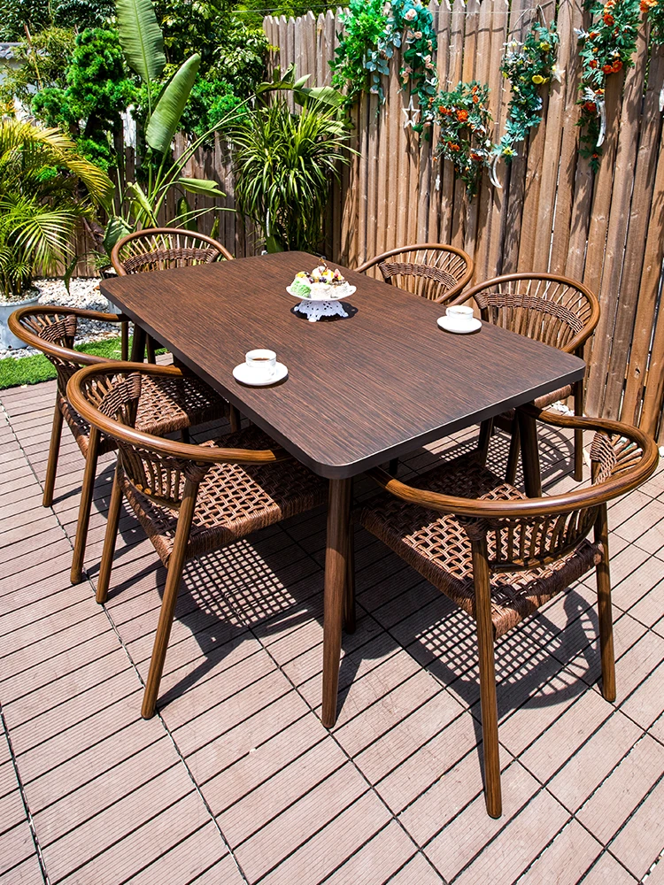 Vanpai Outdoor Solid Wood Dining Set - Waterproof, Sun-Proof Garden Furniture for Patios, Villas, and Hotels - Stylish Rattan-Style Relaxation Ensemble for Your Outdoor Space