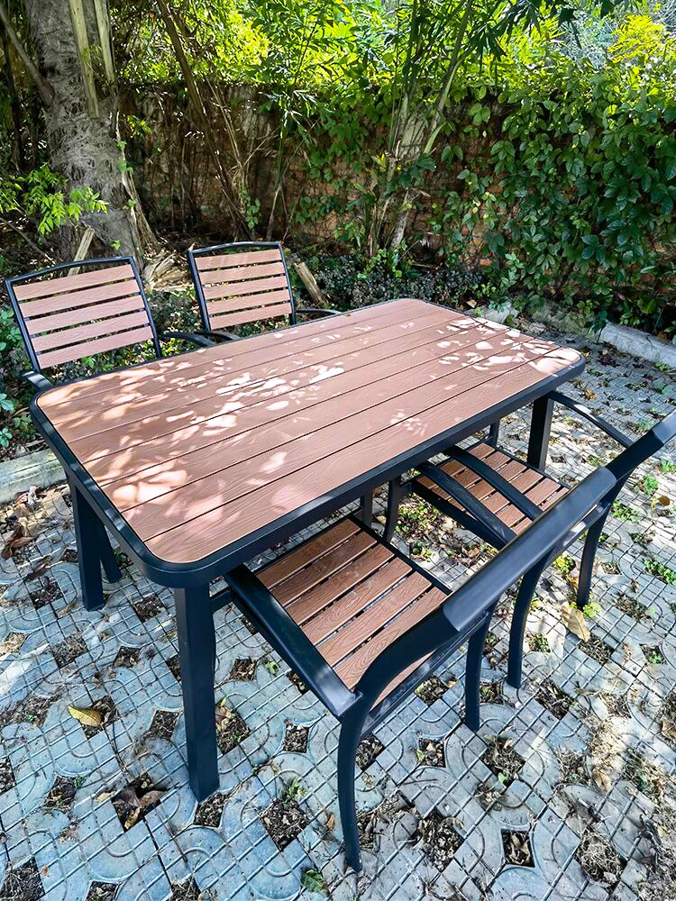 Vanpai Outdoor Plastic-Wood Table and Chair Set - Stylish, Weather-Resistant, Perfect for Patios, Cafés, and Balconies - European-Style Outdoor Dining Furniture