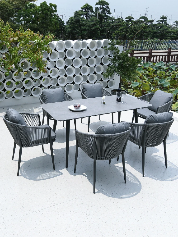 Nordic Rattan Outdoor Dining Set - Stylish and Waterproof Patio Furniture for Villas and Gardens, Perfect for Courtyards and Terraces