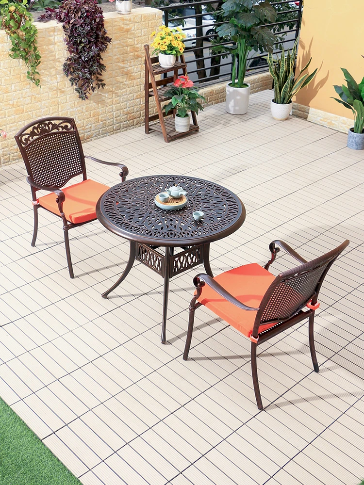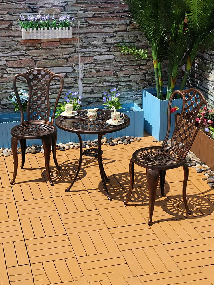 Durable Cast Aluminum Balcony Table and Chairs Set - Corrosion-Resistant Plastic-Wood Combination for Outdoor Patios and Gardens, Sleek Nordic Minimalist Design with Elegant Iron Furniture - Perfect for Relaxation and Style!
