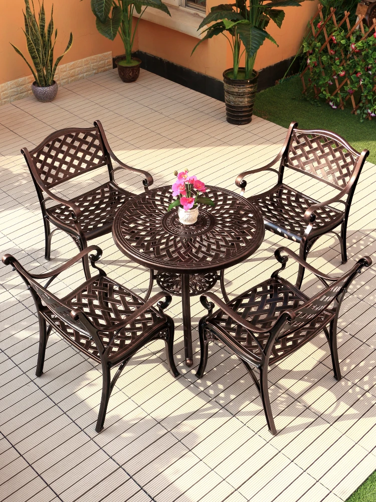 Chinese Style Outdoor Balcony Leisure Table and Chair Set - Weatherproof Iron Furniture for Gardens, Courtyards, and Milk Tea Shops - Perfect for Relaxation and Enjoying the Sun!