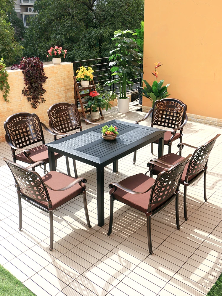 Outdoor BBQ Dining Set - Waterproof Aluminum Alloy Garden Table and Chairs for Patio, Villa, and Backyard - Stylish Cast Aluminum Long Table with Rock Slab Top for Ultimate Relaxation and Entertaining