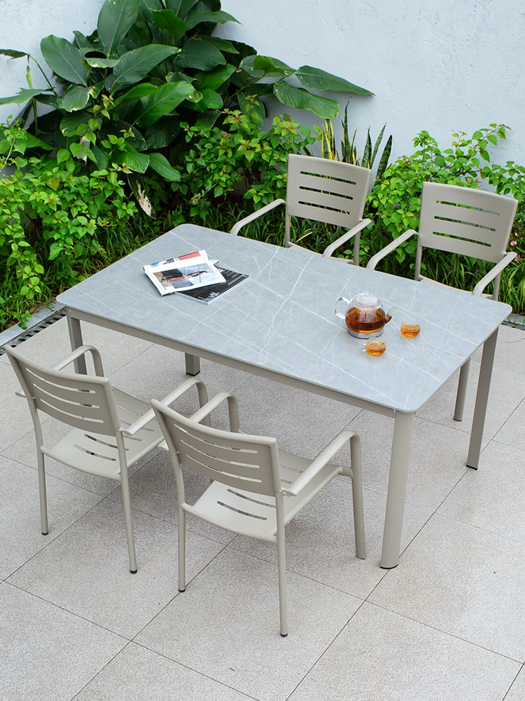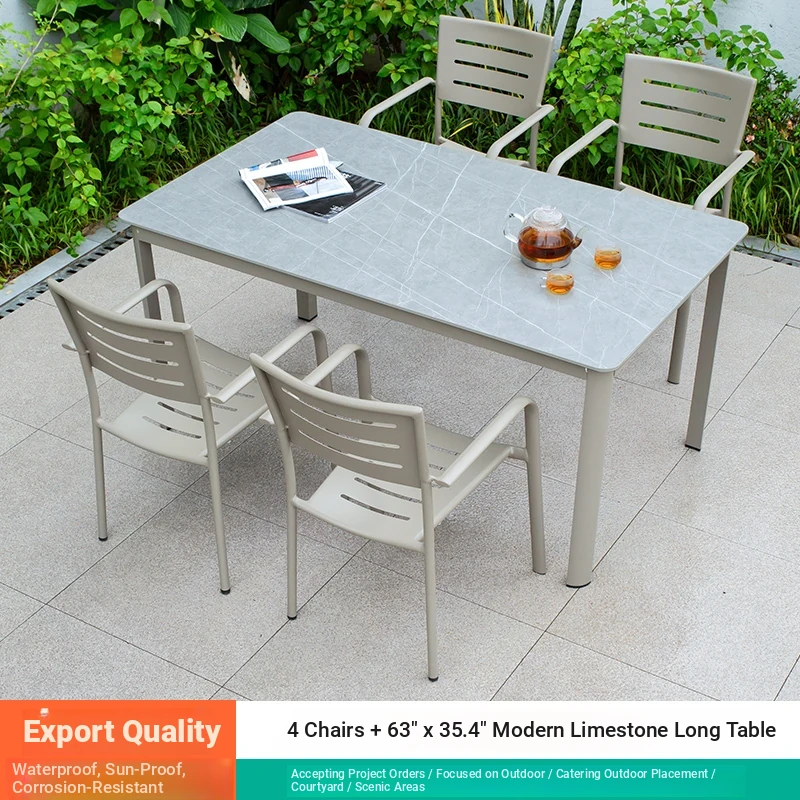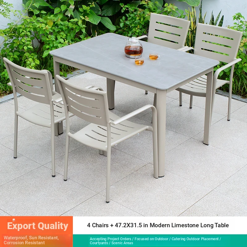 4+1: aluminum alloy flat tube chair + [47.24in*31.50in modern limestone board long table]](4+1: aluminum alloy flat tube chair + [47.24in*31.50in modern limestone board long table]])