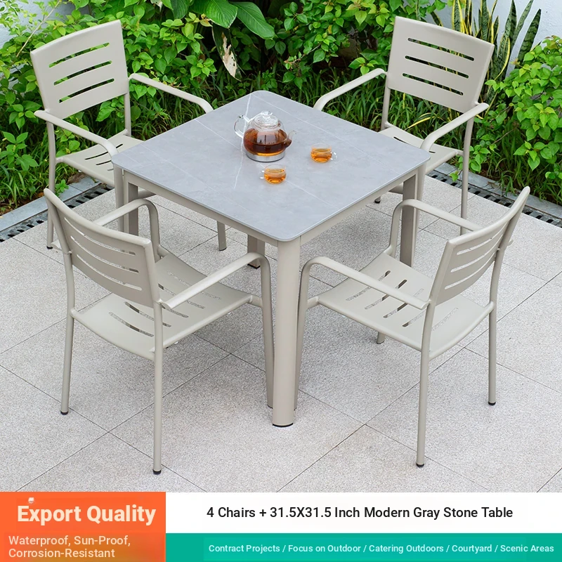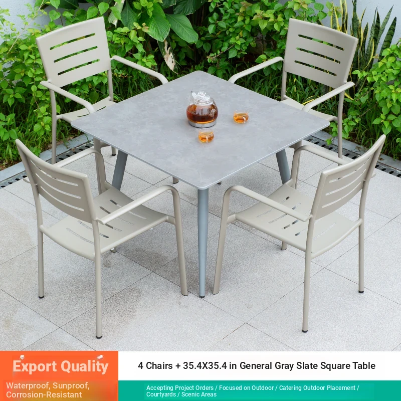 4+1: aluminum alloy flat tube chair + [35.43in*35.43in General gray rock plate square table]](4+1: aluminum alloy flat tube chair + [35.43in*35.43in General gray rock plate square table]])