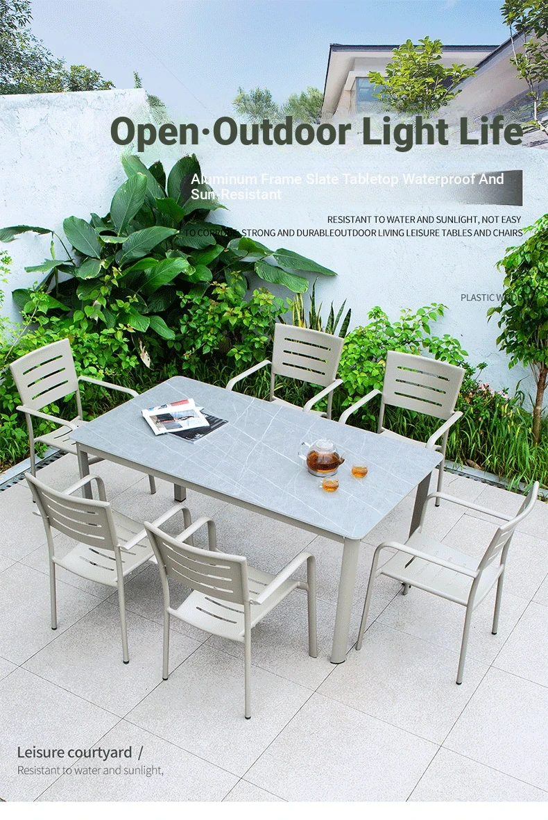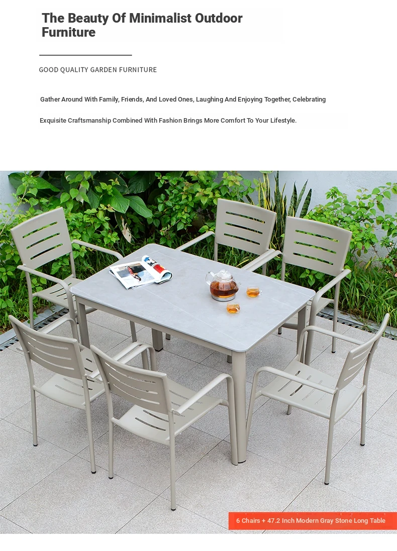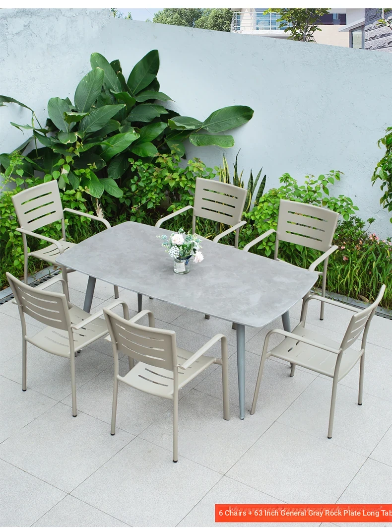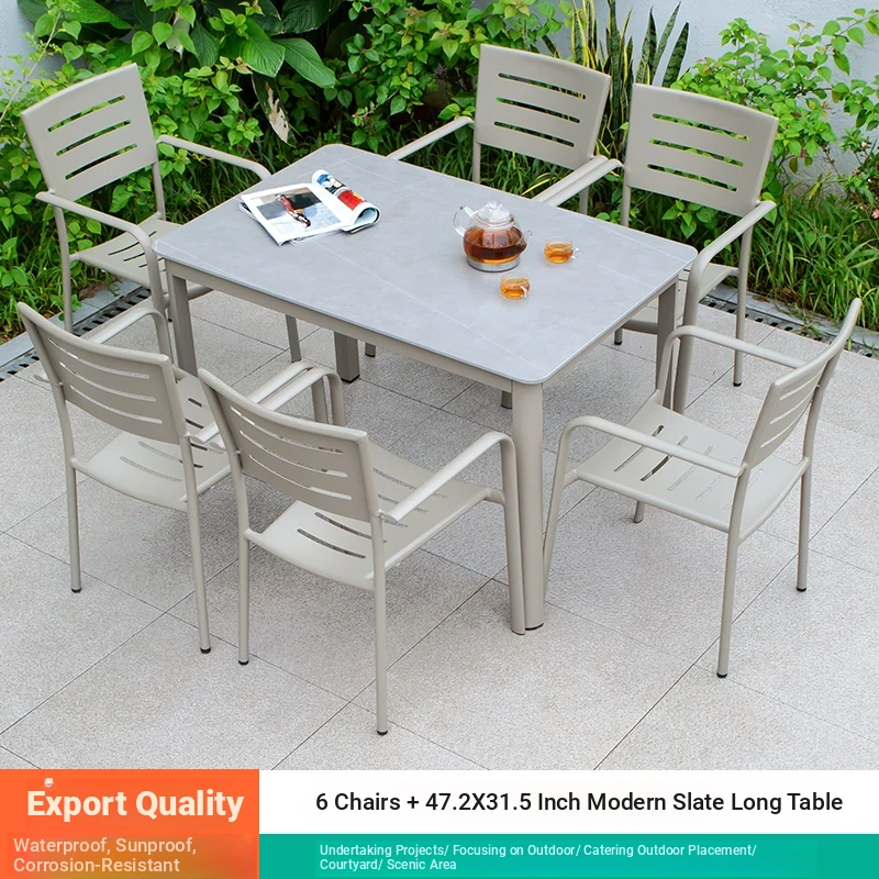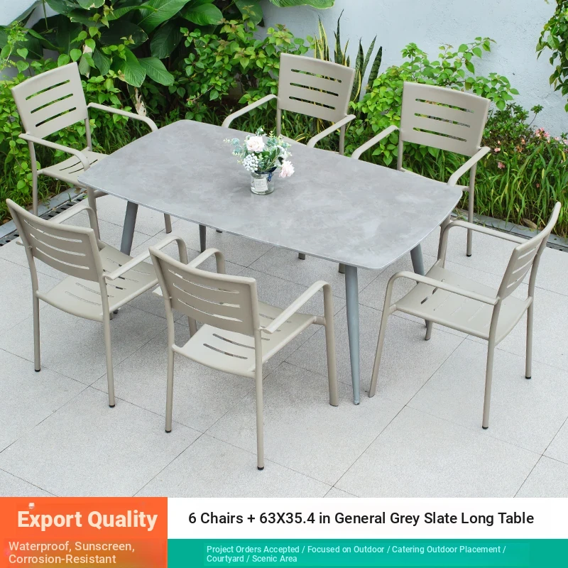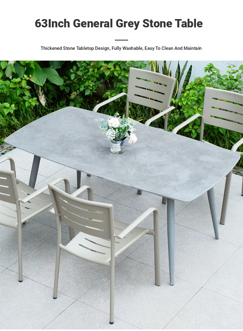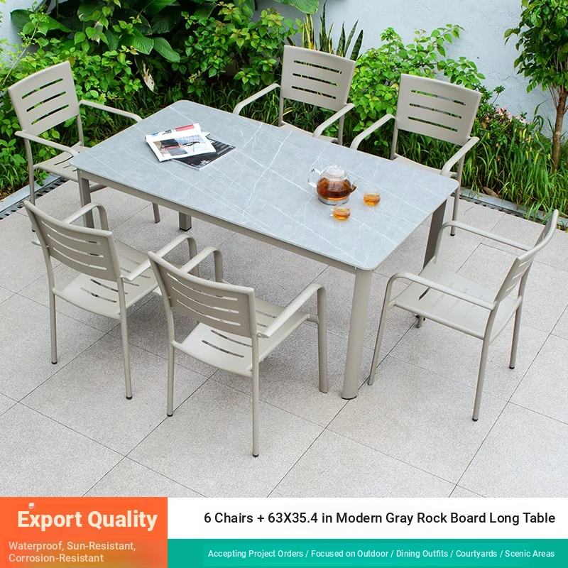 6+1: aluminum alloy flat tube chair + [62.99in*35.43in General gray rock plate long table]](6+1: aluminum alloy flat tube chair + [62.99in*35.43in General gray rock plate long table]])