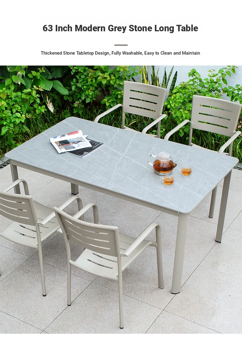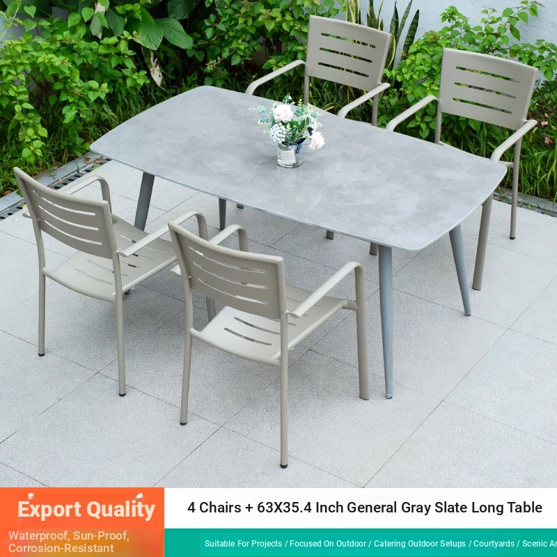 4+1: aluminum alloy flat tube chair + [62.99in*35.43in General gray rock plate long table]](4+1: aluminum alloy flat tube chair + [62.99in*35.43in General gray rock plate long table]])