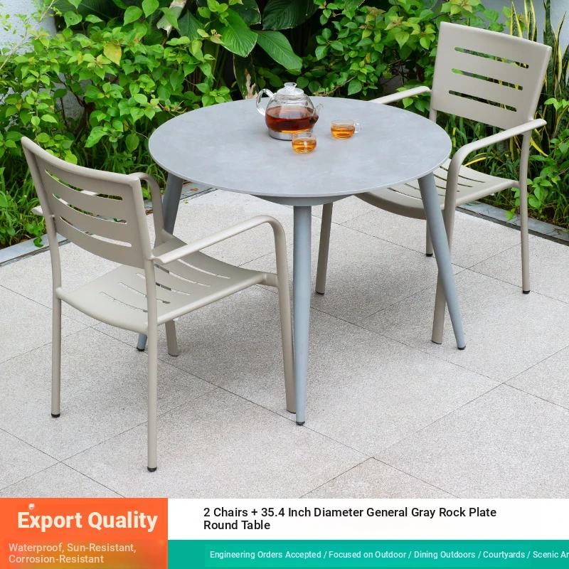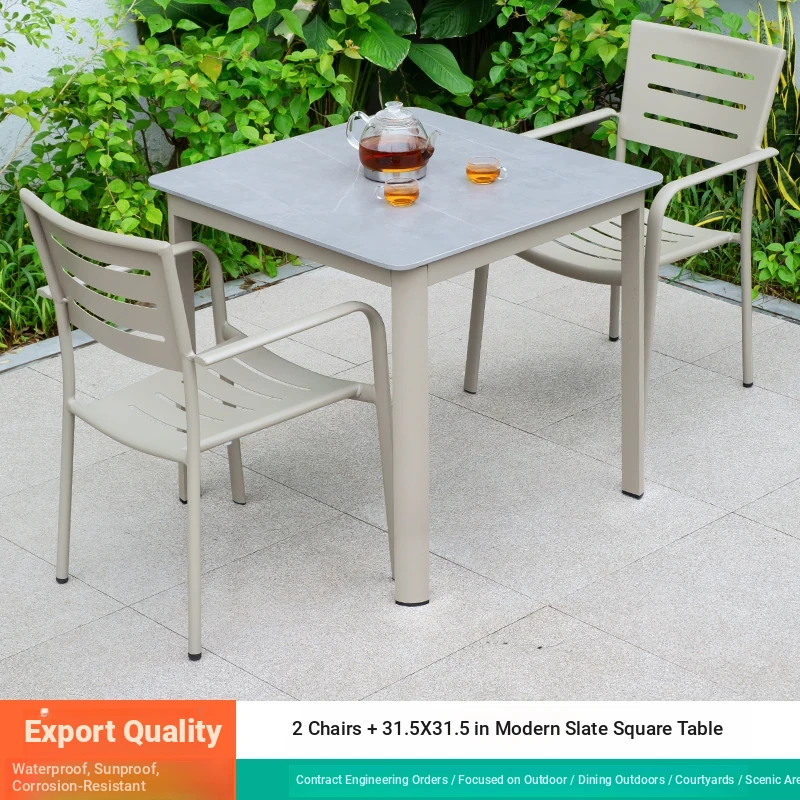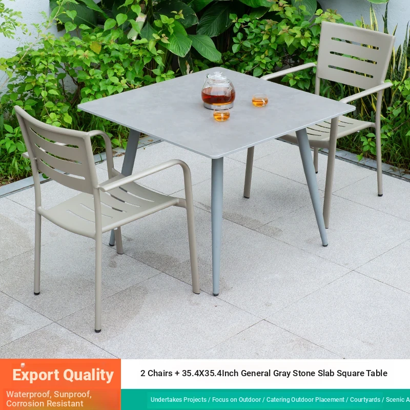 2+1: aluminum alloy flat tube chair + [35.43in*35.43in General gray rock plate square table]](2+1: aluminum alloy flat tube chair + [35.43in*35.43in General gray rock plate square table]])