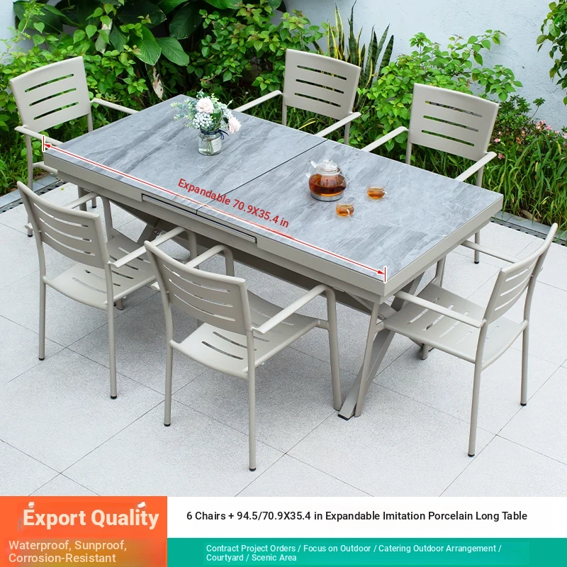 6+1: aluminum alloy flat tube chair + [94.49in*35.43in telescopic porcelain imitation long table]](6+1: aluminum alloy flat tube chair + [94.49in*35.43in telescopic porcelain imitation long table]])