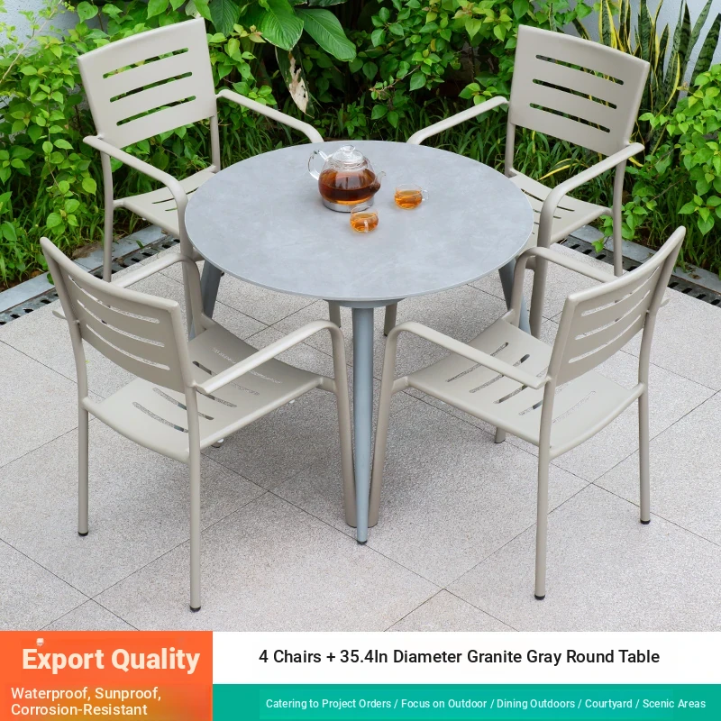 4+1: aluminum alloy flat tube chair + [diameter 35.43in general limestone board round table]](4+1: aluminum alloy flat tube chair + [diameter 35.43in general limestone board round table]])