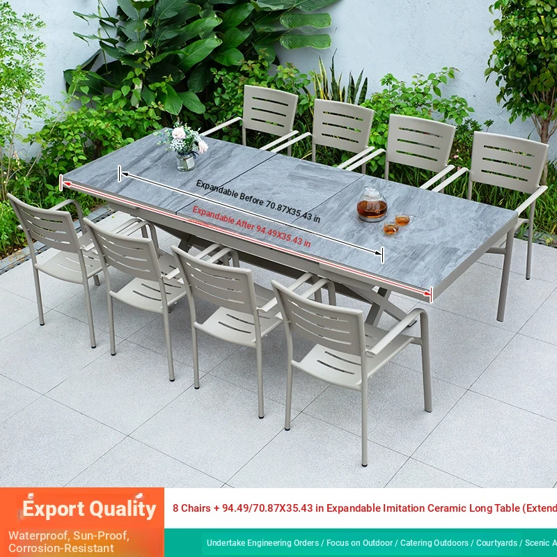 8+1: aluminum alloy flat tube chair + [94.49in*35.43in telescopic porcelain imitation long table]](8+1: aluminum alloy flat tube chair + [94.49in*35.43in telescopic porcelain imitation long table]])