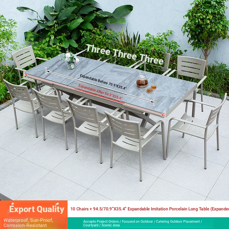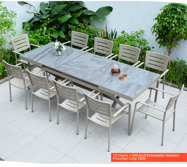 10+1: aluminum alloy flat tube chair + [94.49in*35.43in telescopic porcelain imitation long table]](10+1: aluminum alloy flat tube chair + [94.49in*35.43in telescopic porcelain imitation long table]])