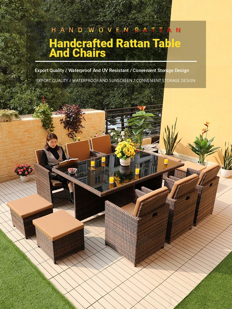 Outdoor Rattan Chair Set for Garden and Patio - Stylish and Minimalist Design, Waterproof and Sun-Proof, Perfect for Relaxation on Your Balcony or Courtyard Tea Table