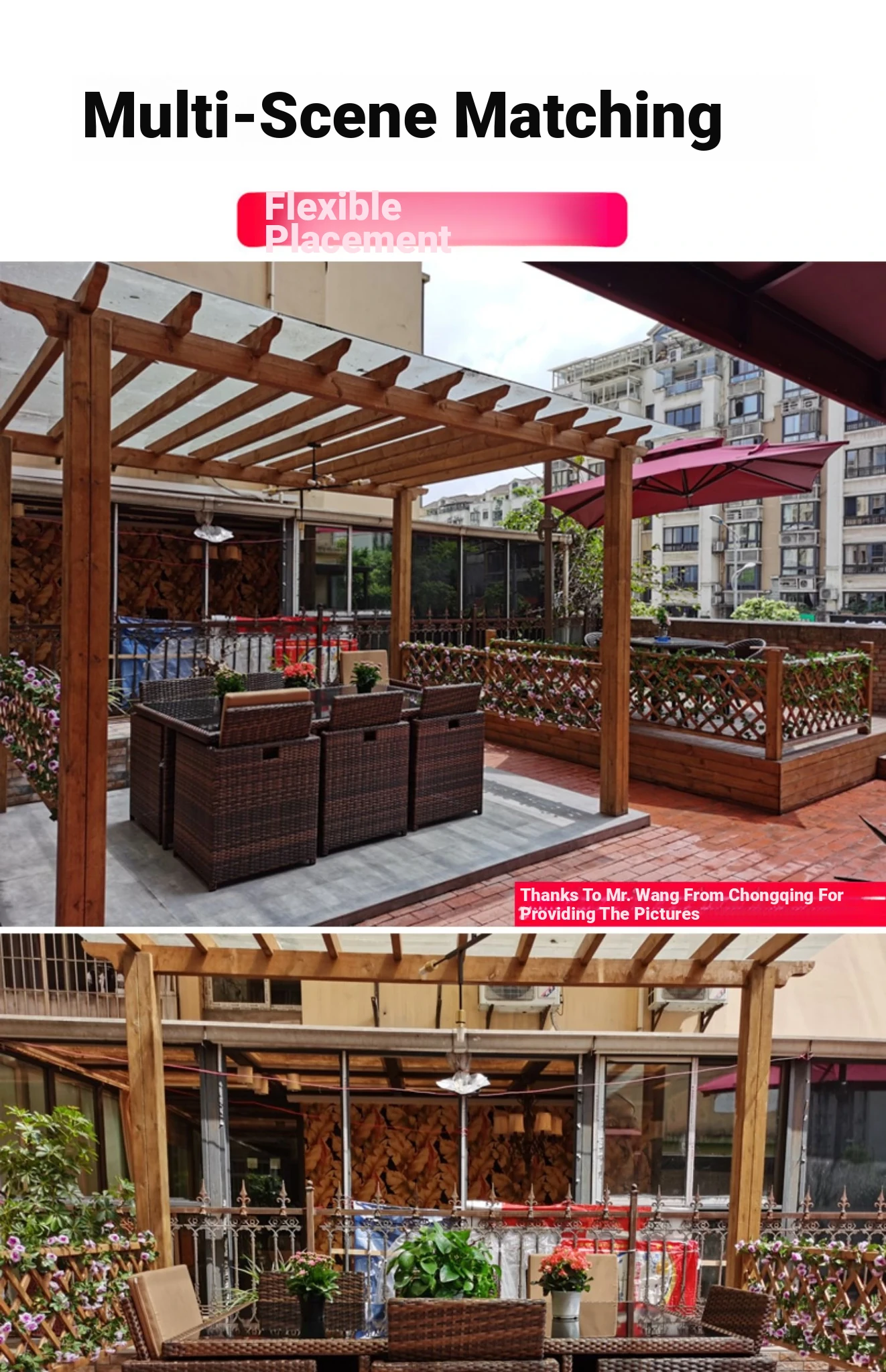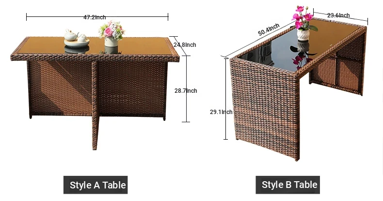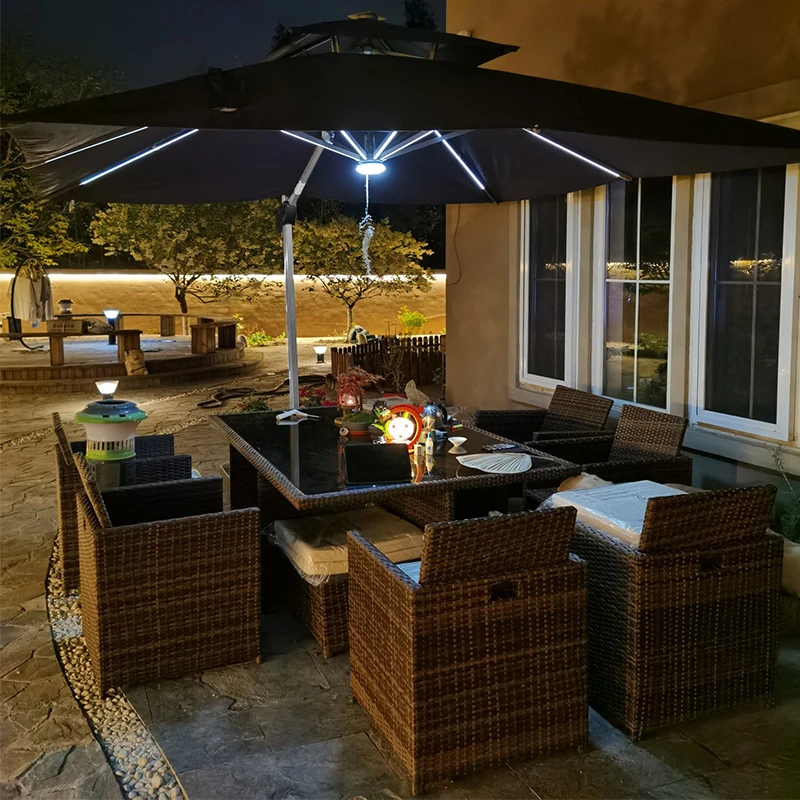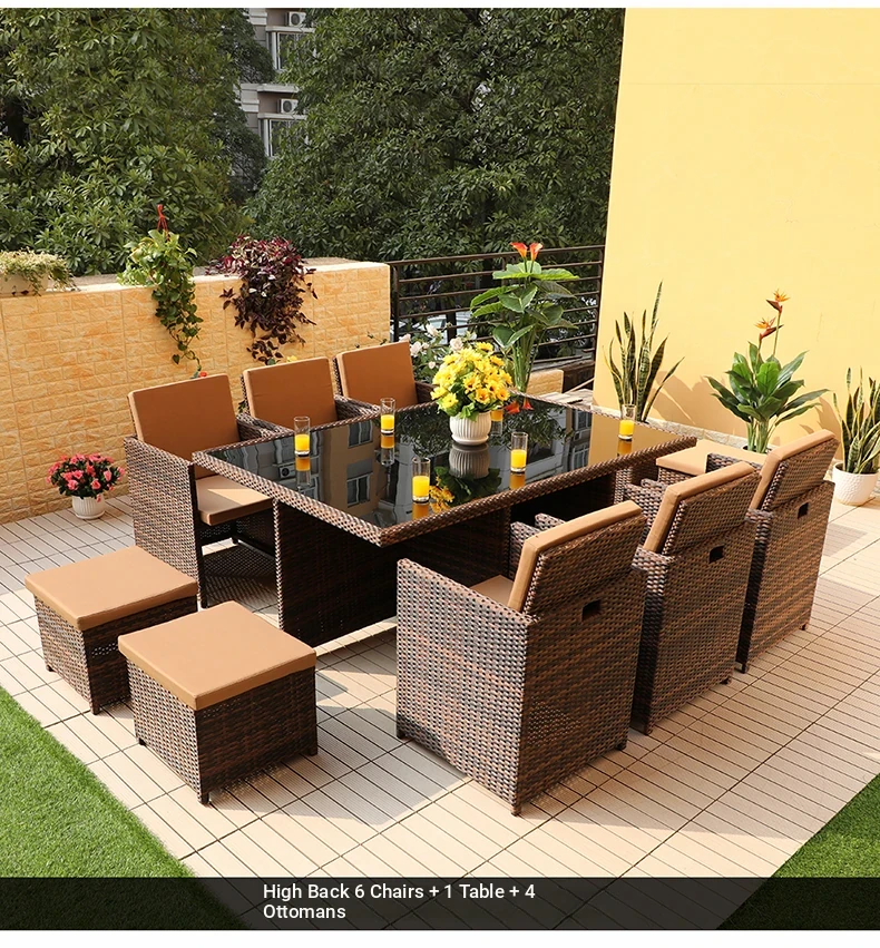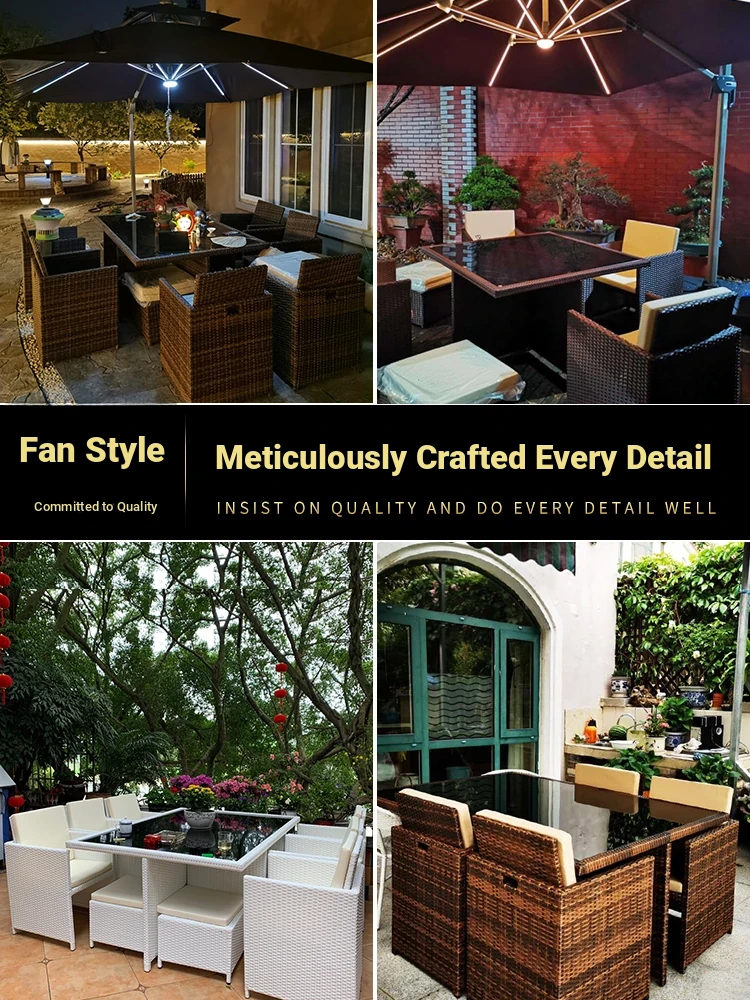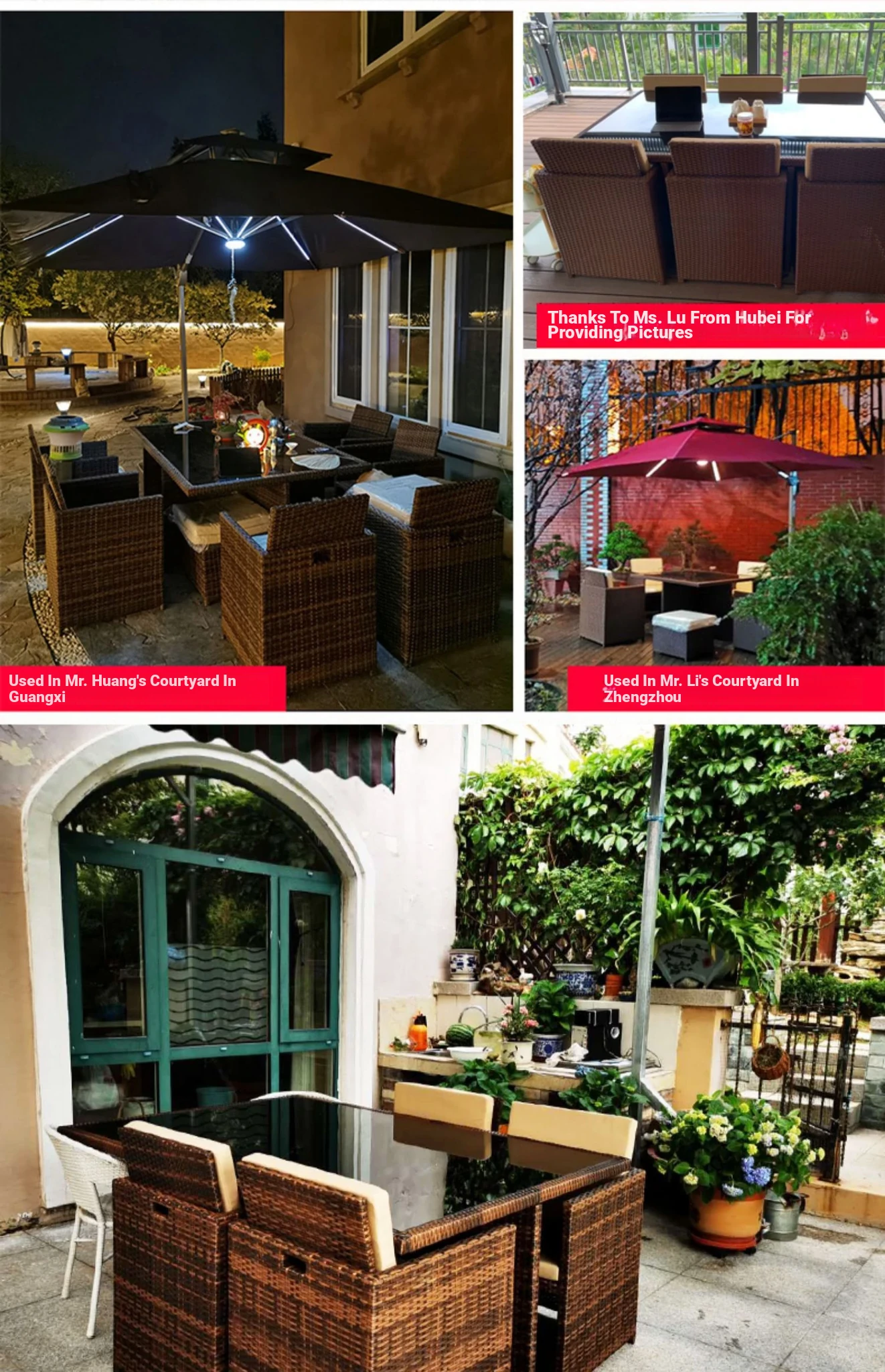 Combination 5: [high back] 6 chairs +1 long table +4 feet + solar light bar Square 118.11 in umbrella