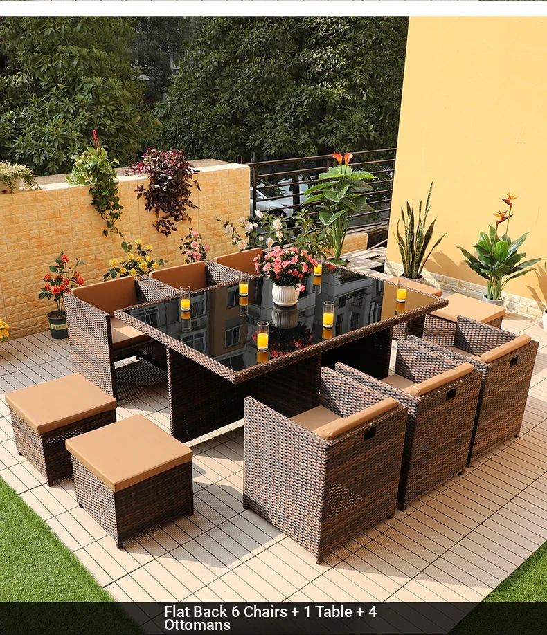 Upgrade [aluminum frame]: Plaid [high back] 6 chairs +1 long table +4 pedals-send cushion to send cover