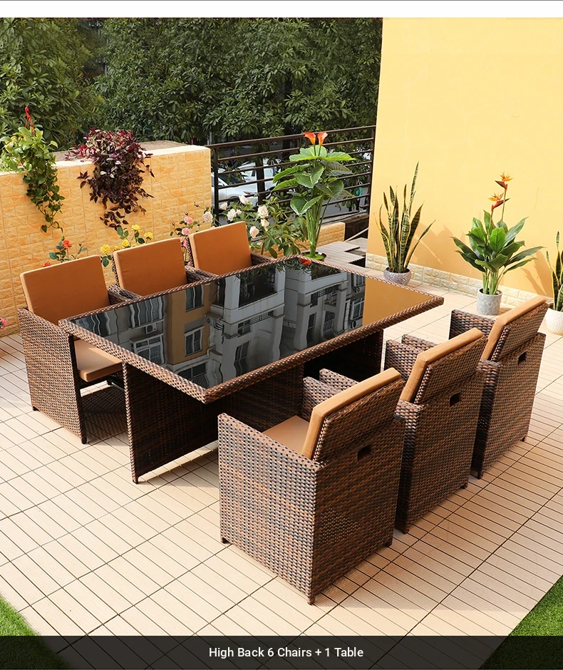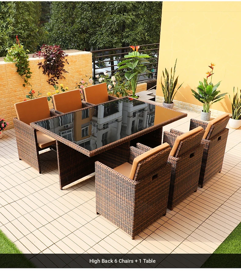 Upgrade [aluminum frame]: Plaid [high back] 6 chairs +1 long table-send pad to send dust cover