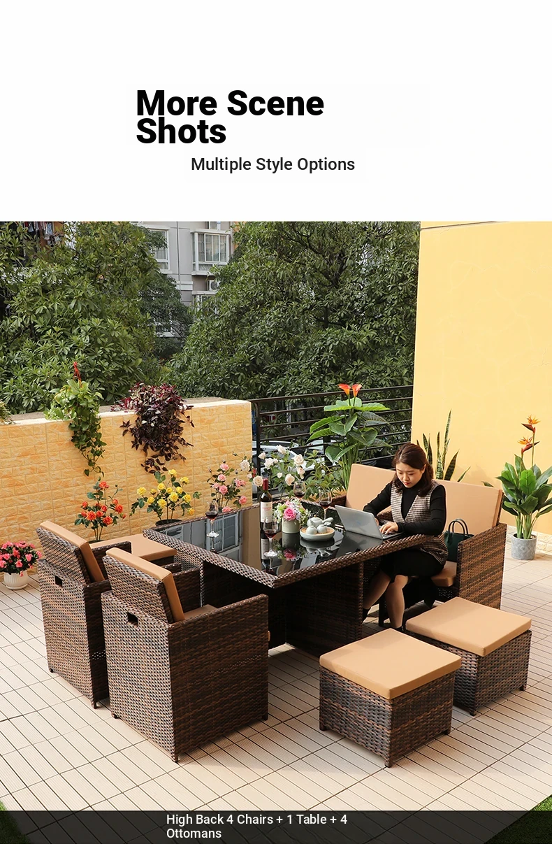 Upgrade [aluminum frame]: Plaid [high back] 4 chairs +1 square table-send pad to send dust cover