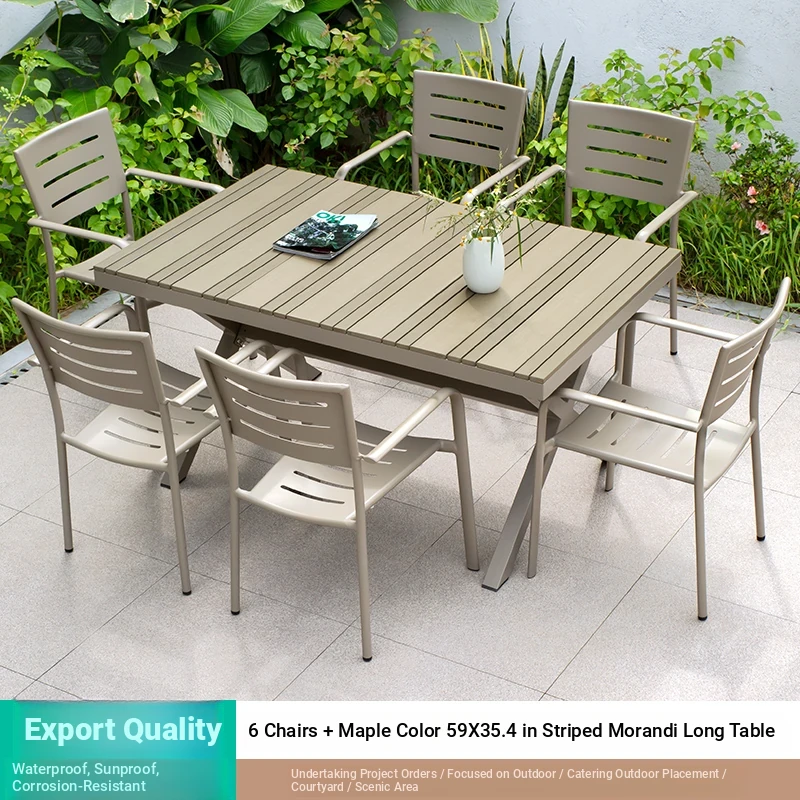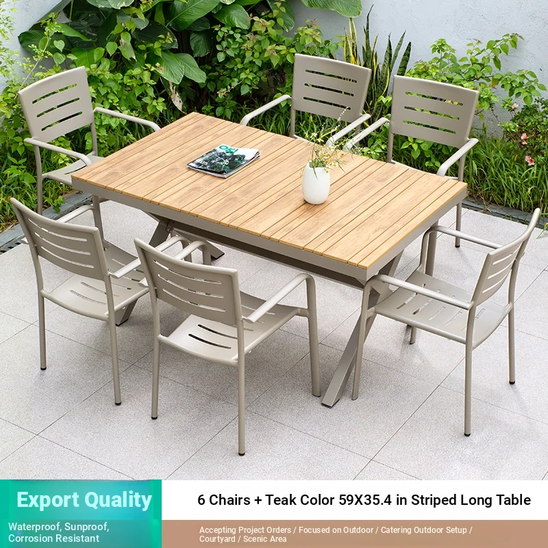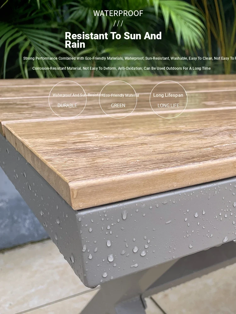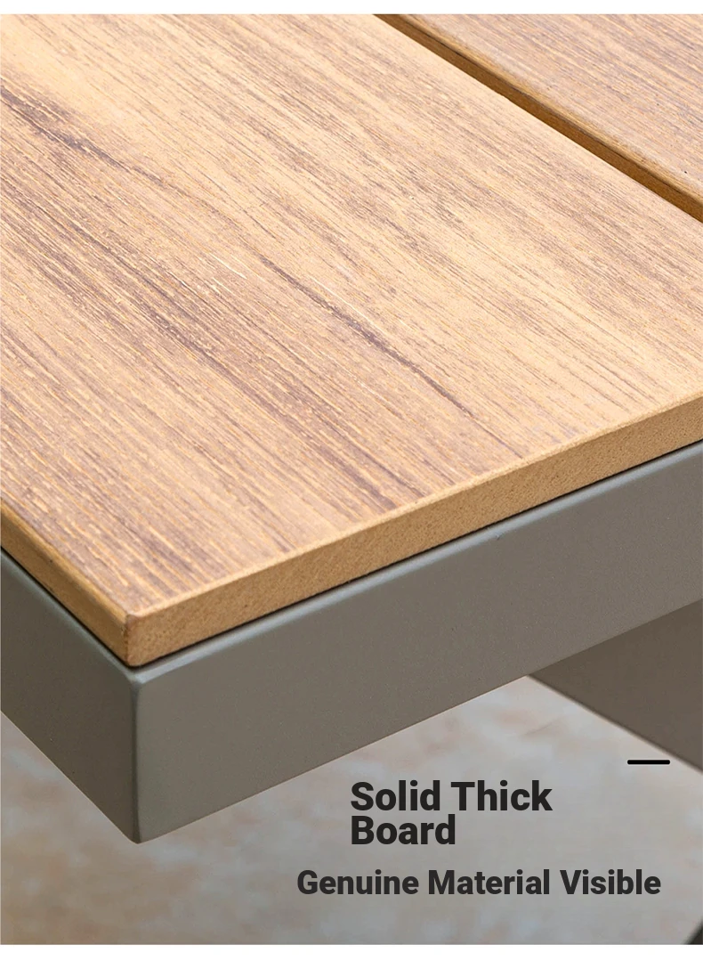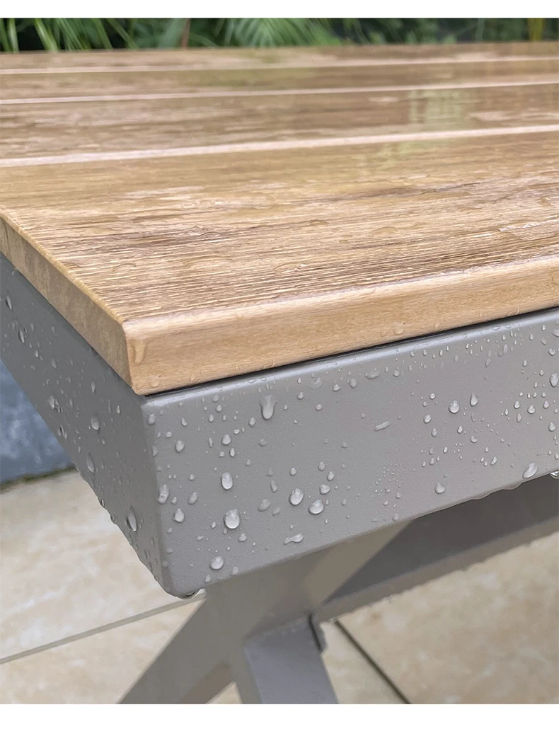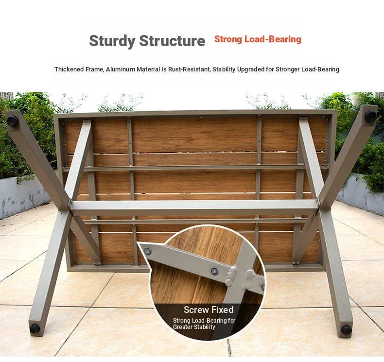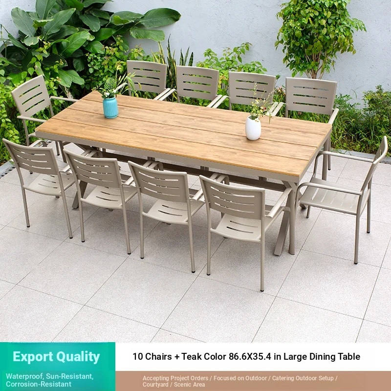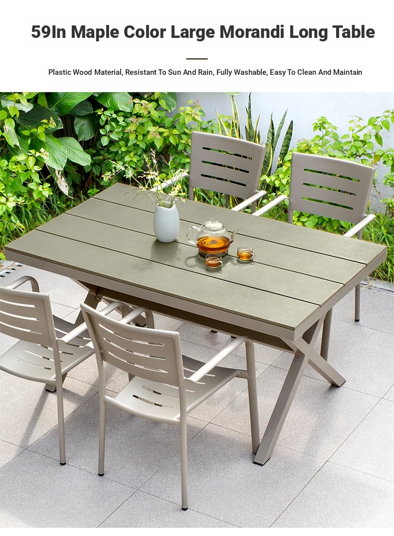 Outdoor Waterproof and UV-Resistant Plastic Wood Patio Furniture Set - Aluminum Alloy, Corrosion-Resistant Dining Table and Chairs for Villa Courtyards and Terraces, Perfect for Relaxing Outdoors!