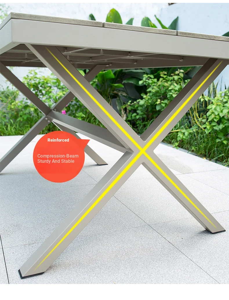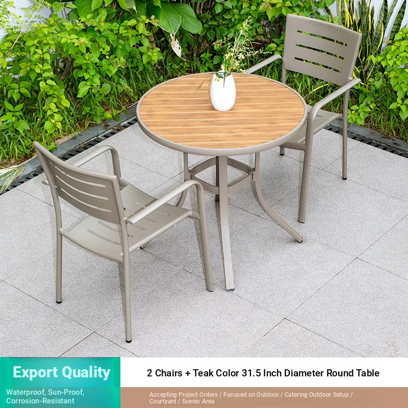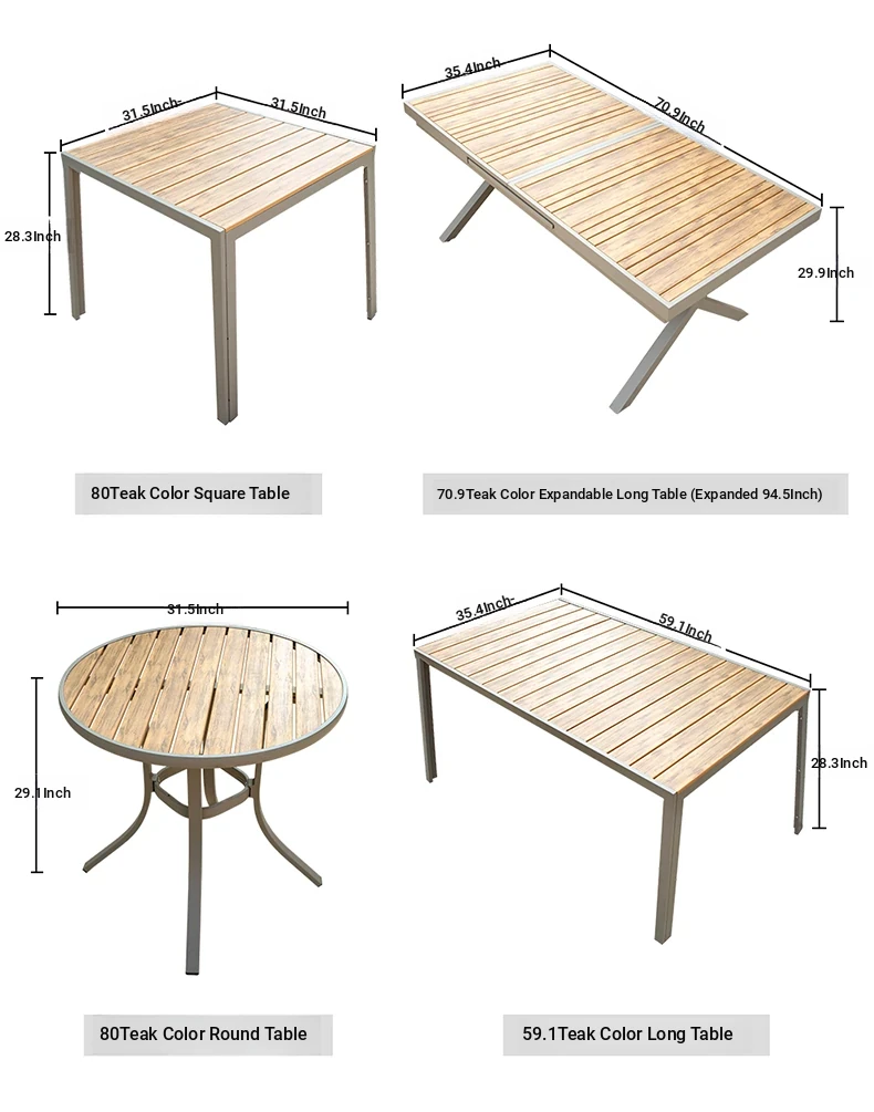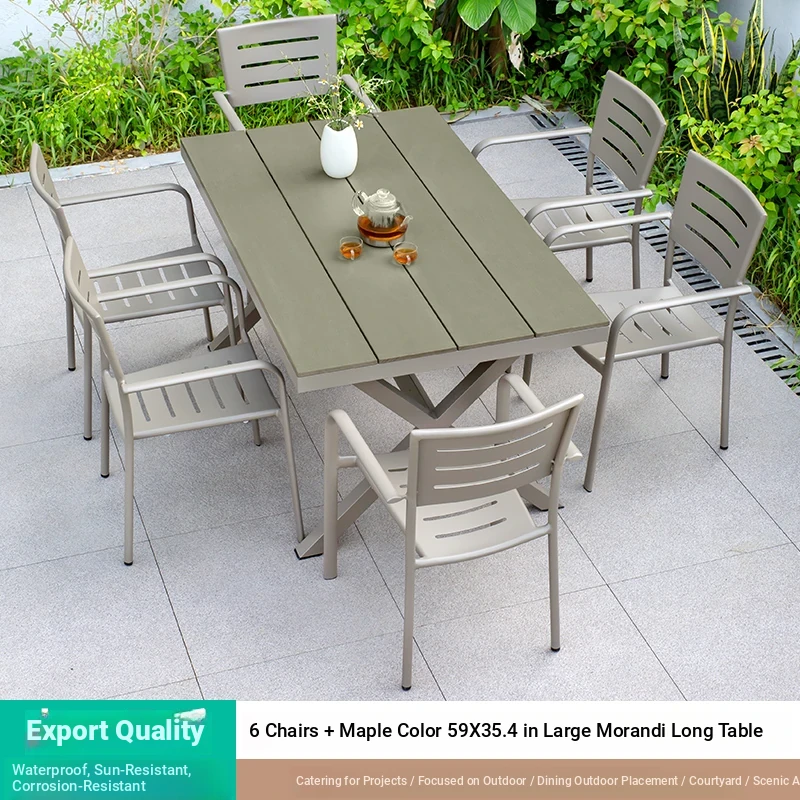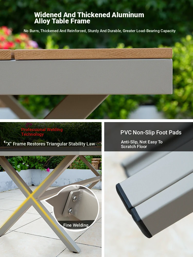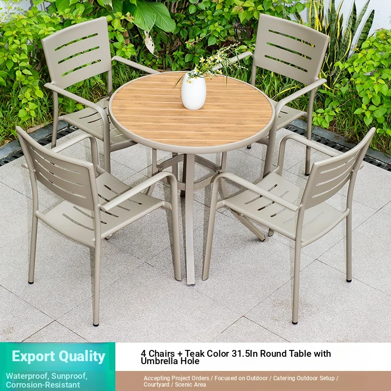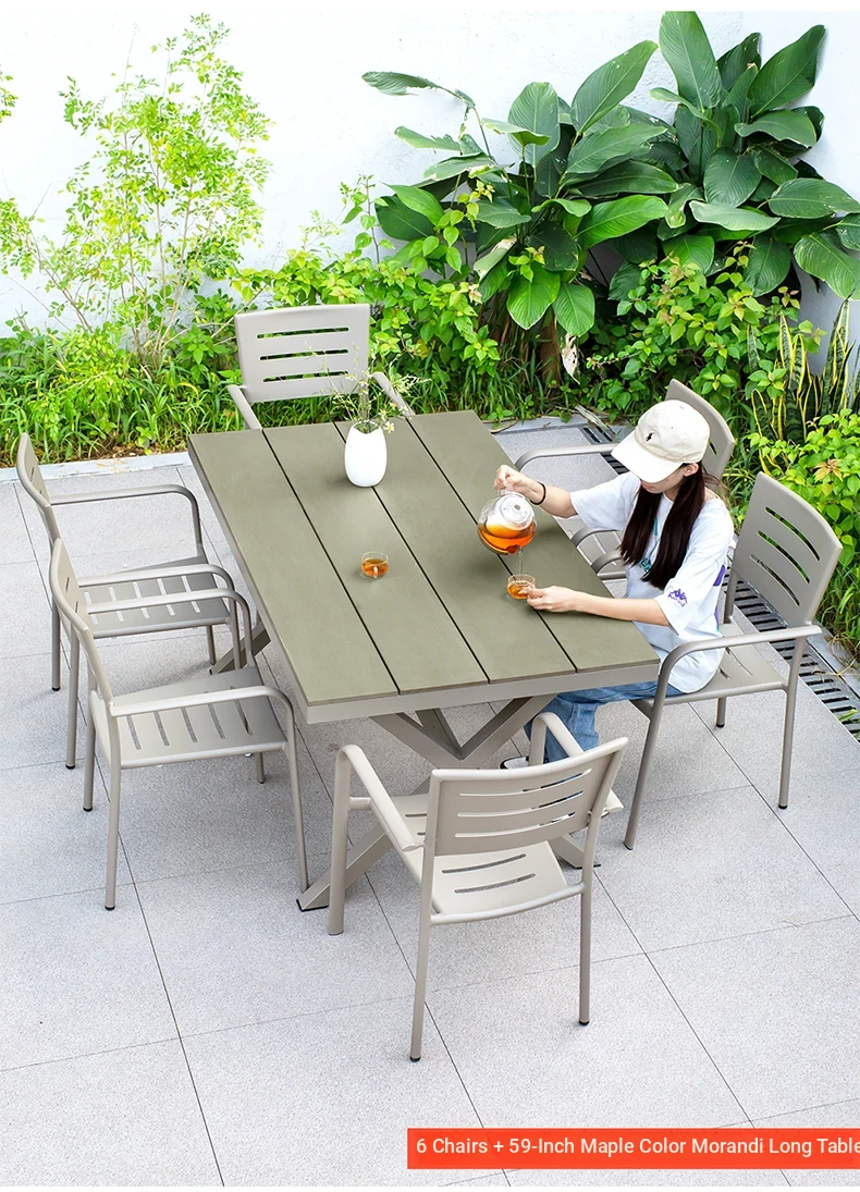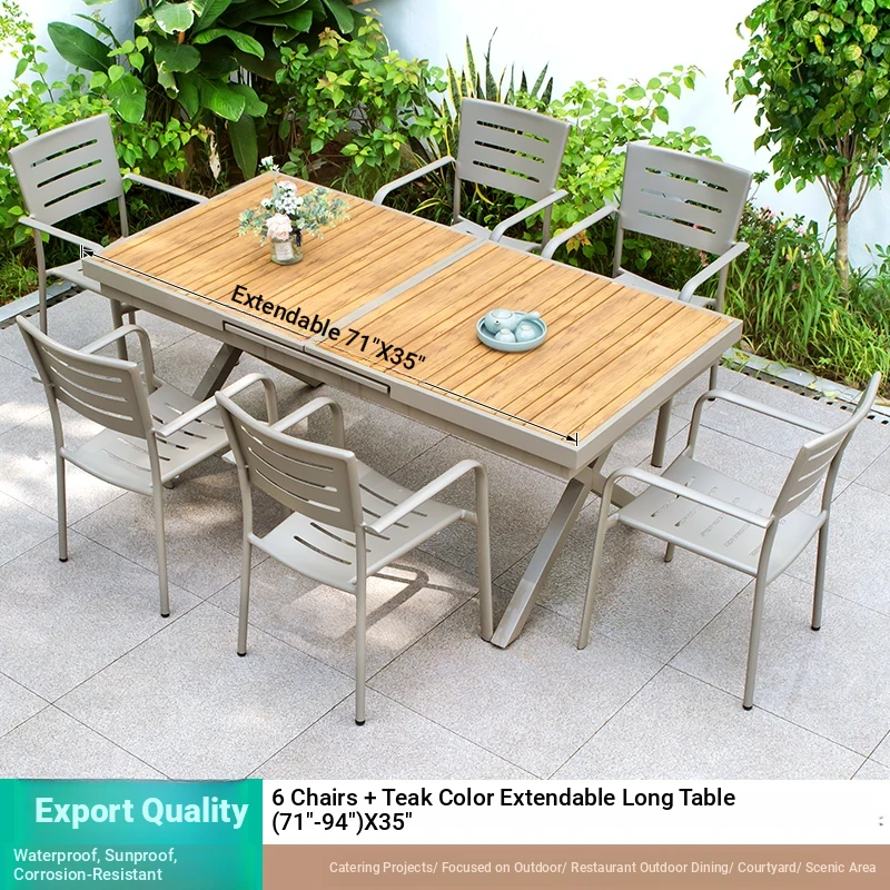 Outdoor Waterproof and UV-Resistant Plastic Wood Patio Furniture Set - Aluminum Alloy, Corrosion-Resistant Dining Table and Chairs for Villa Courtyards and Terraces, Perfect for Relaxing Outdoors!