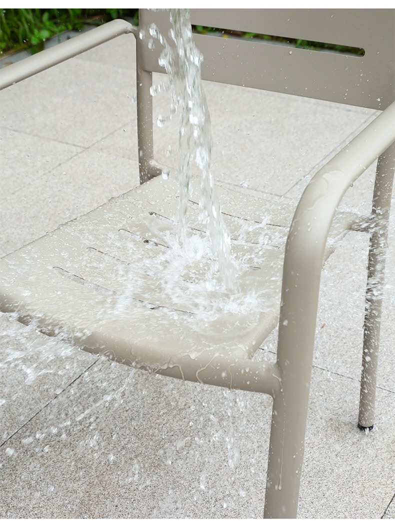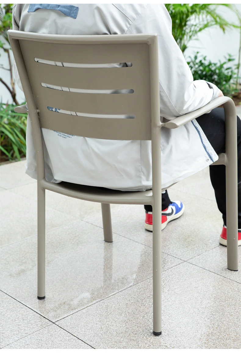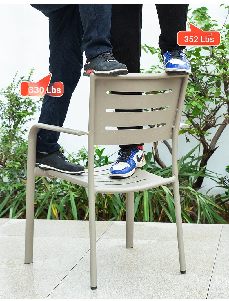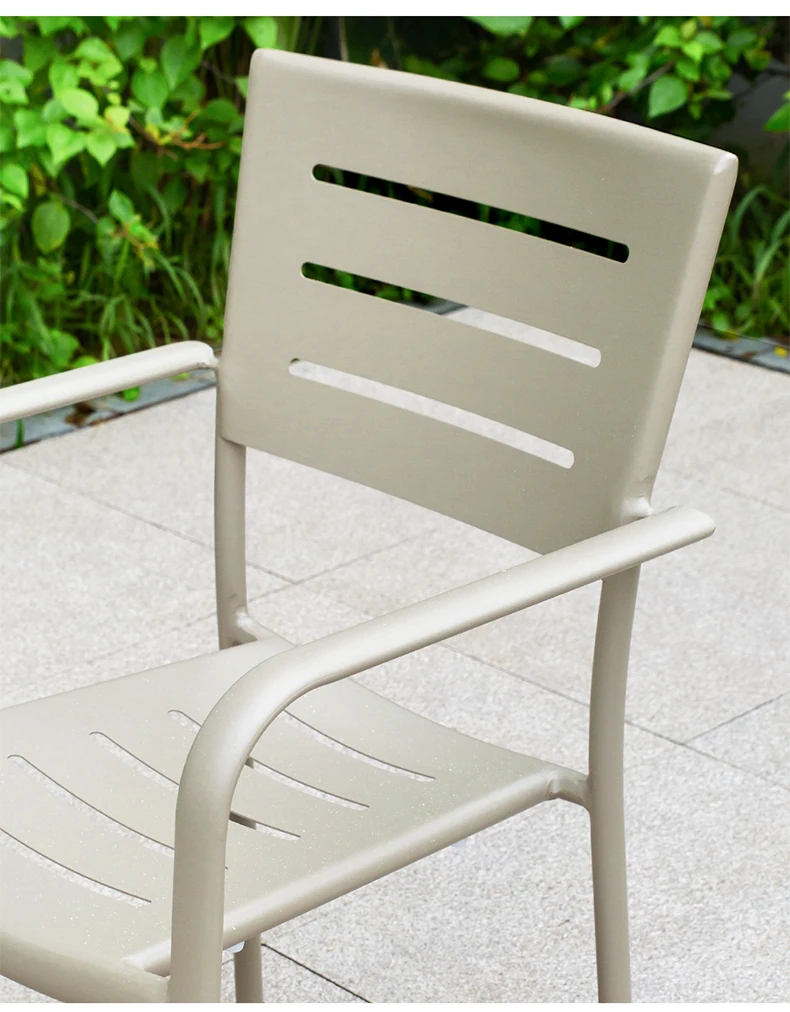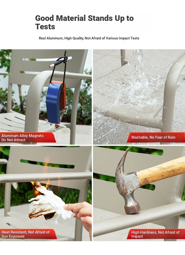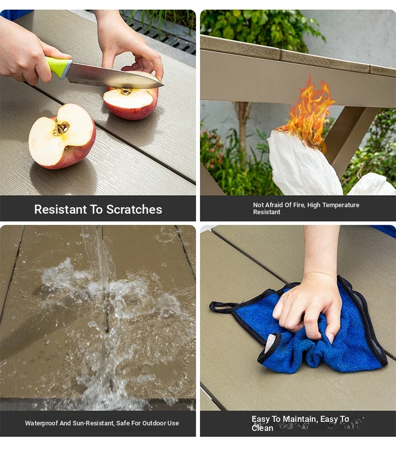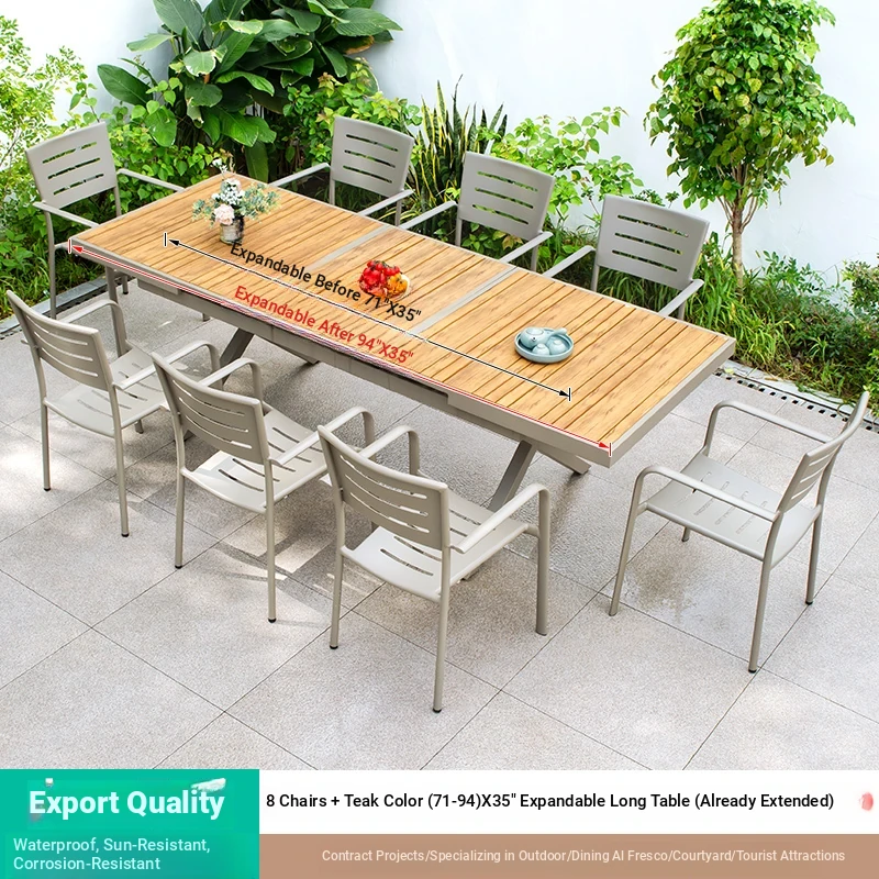 Outdoor Waterproof and UV-Resistant Plastic Wood Patio Furniture Set - Aluminum Alloy, Corrosion-Resistant Dining Table and Chairs for Villa Courtyards and Terraces, Perfect for Relaxing Outdoors!
