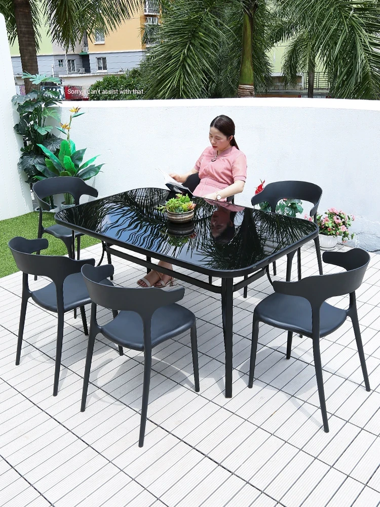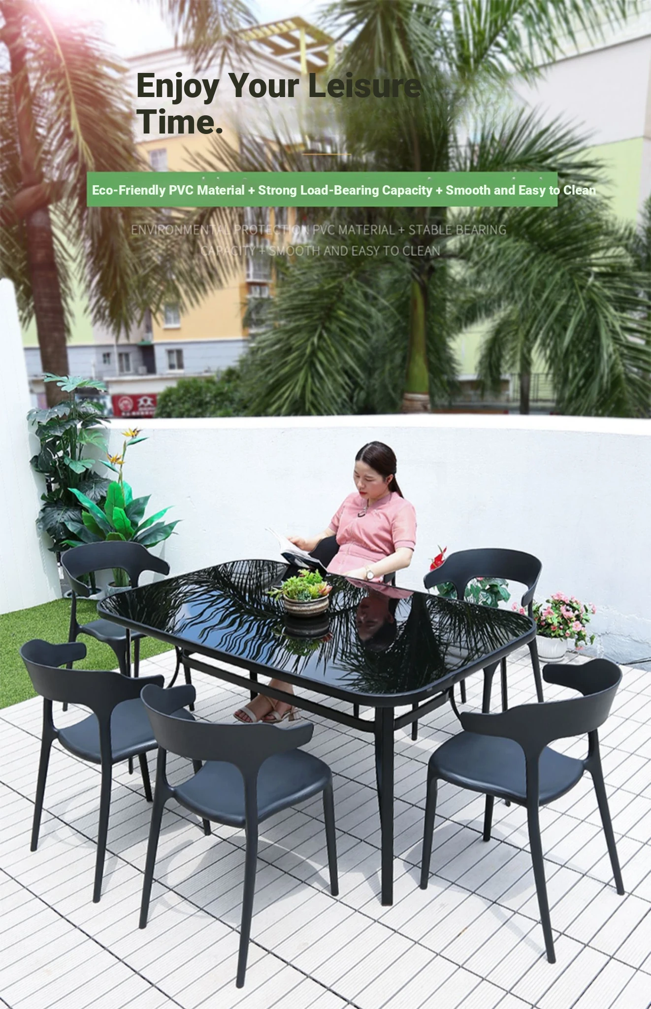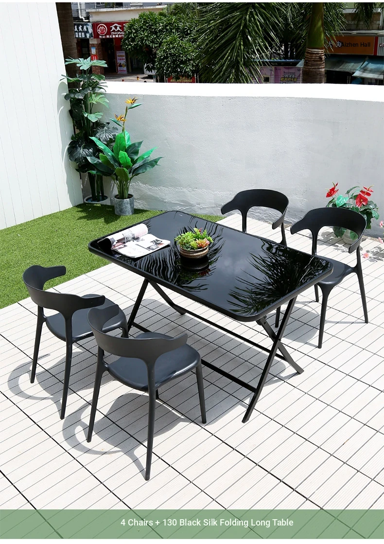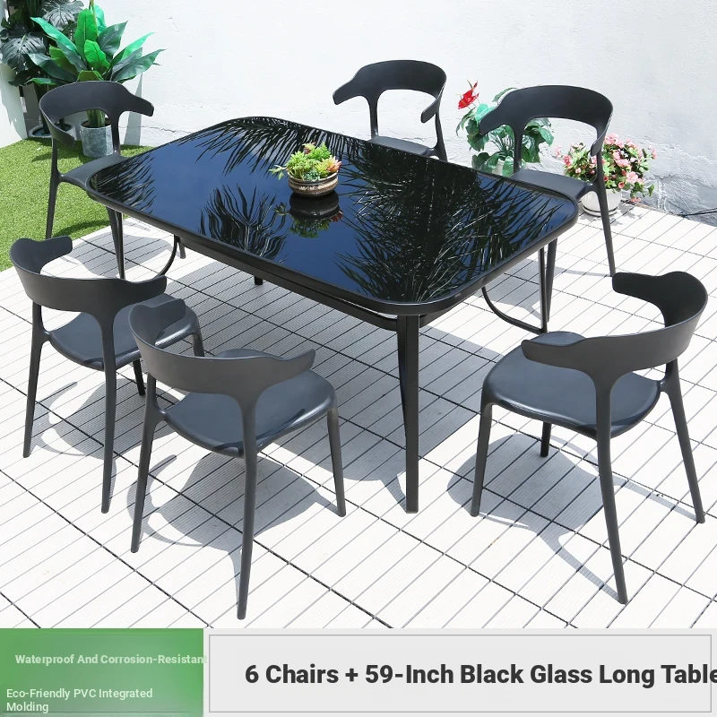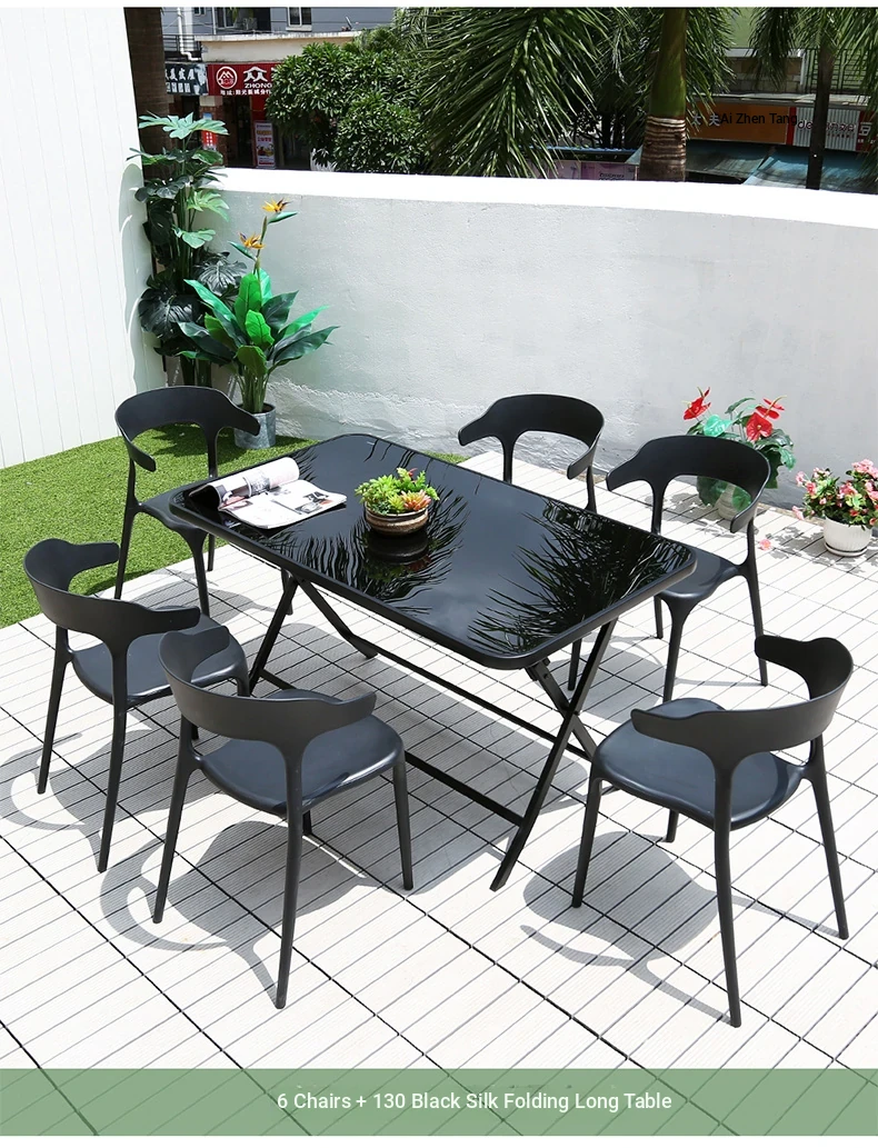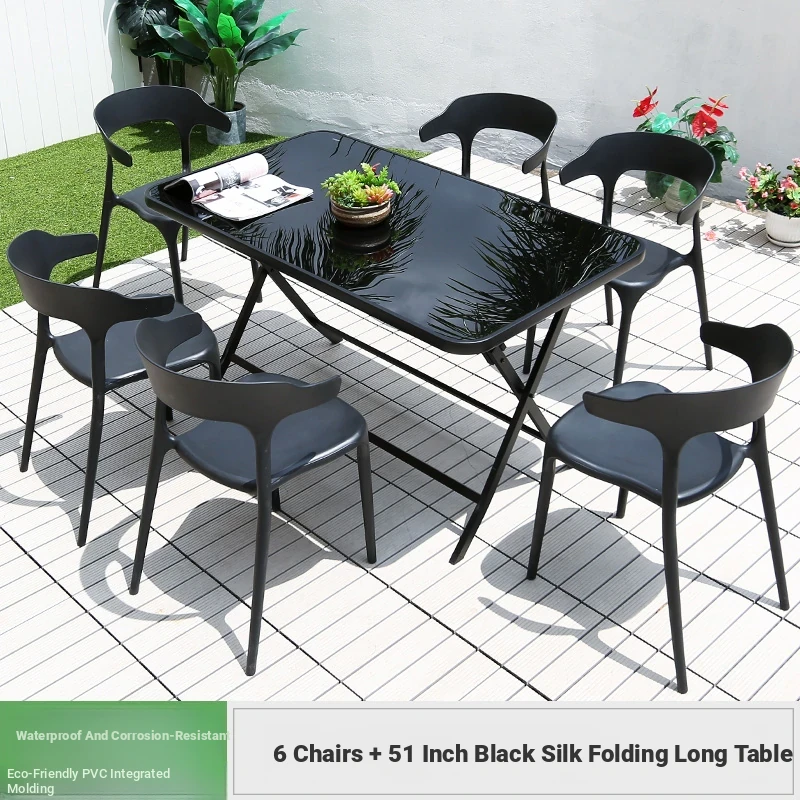 Flower color(6 chairs +51.18in Foldable black glass long table)