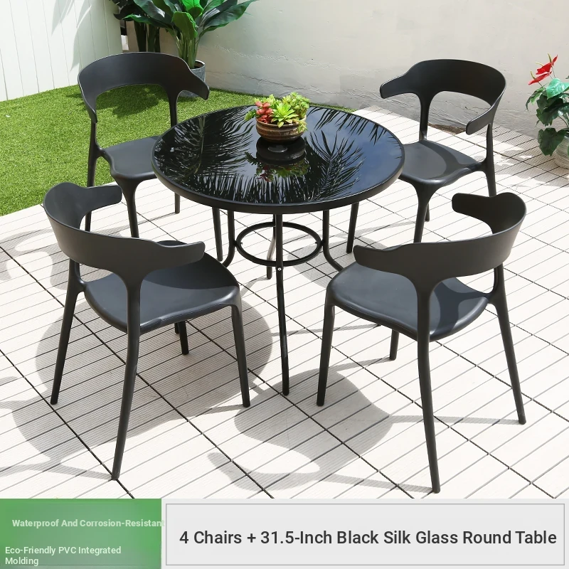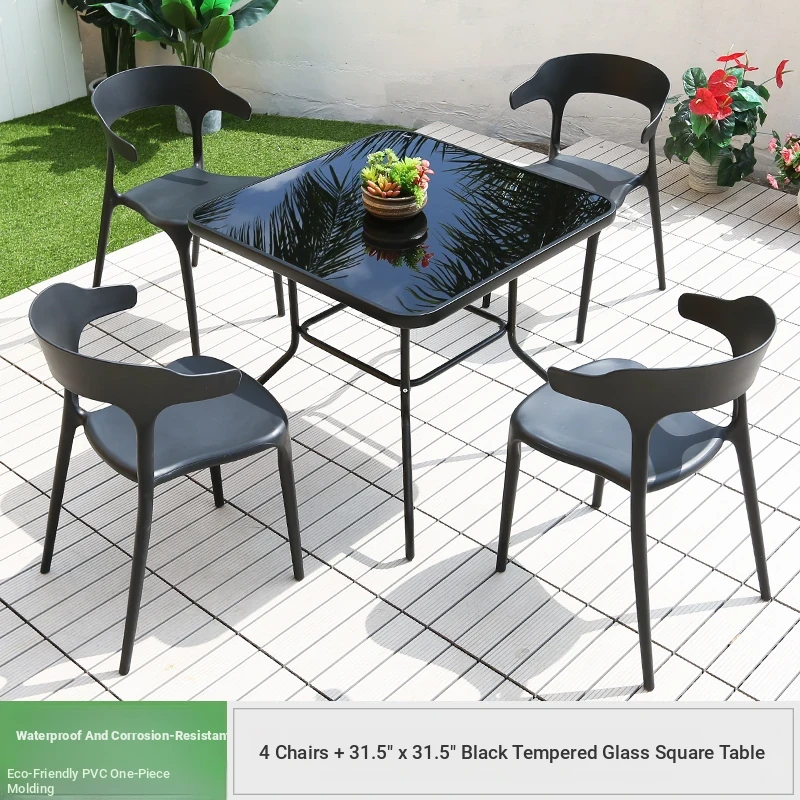 Dark gray(4 chairs +31.50in*31.50in black glass square table)