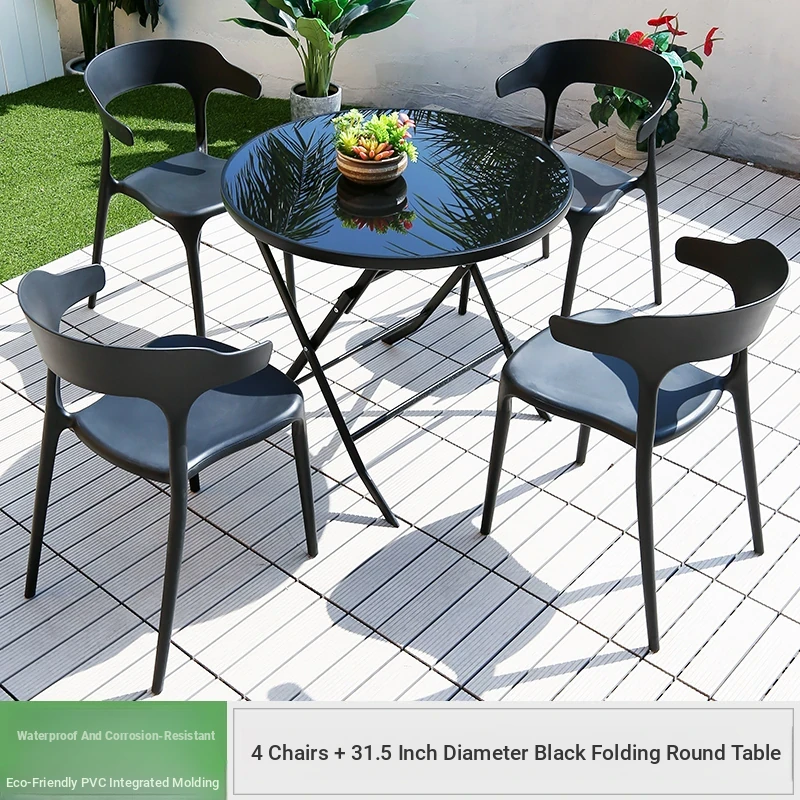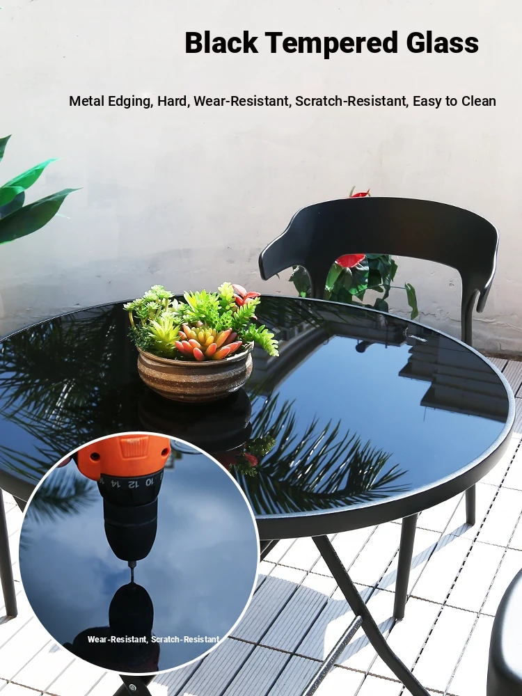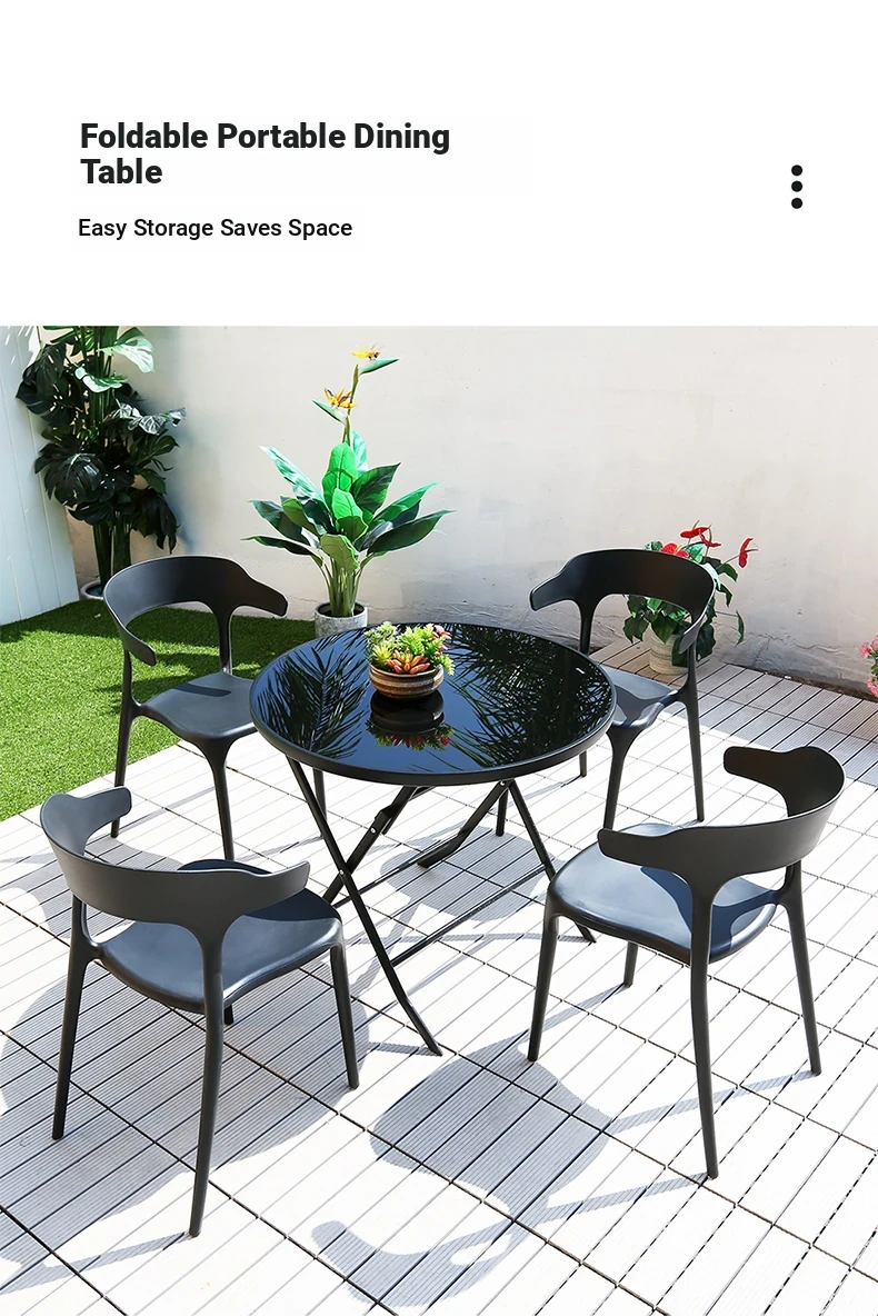 Dark Blue(4 chairs +31.50in Foldable black glass round table)