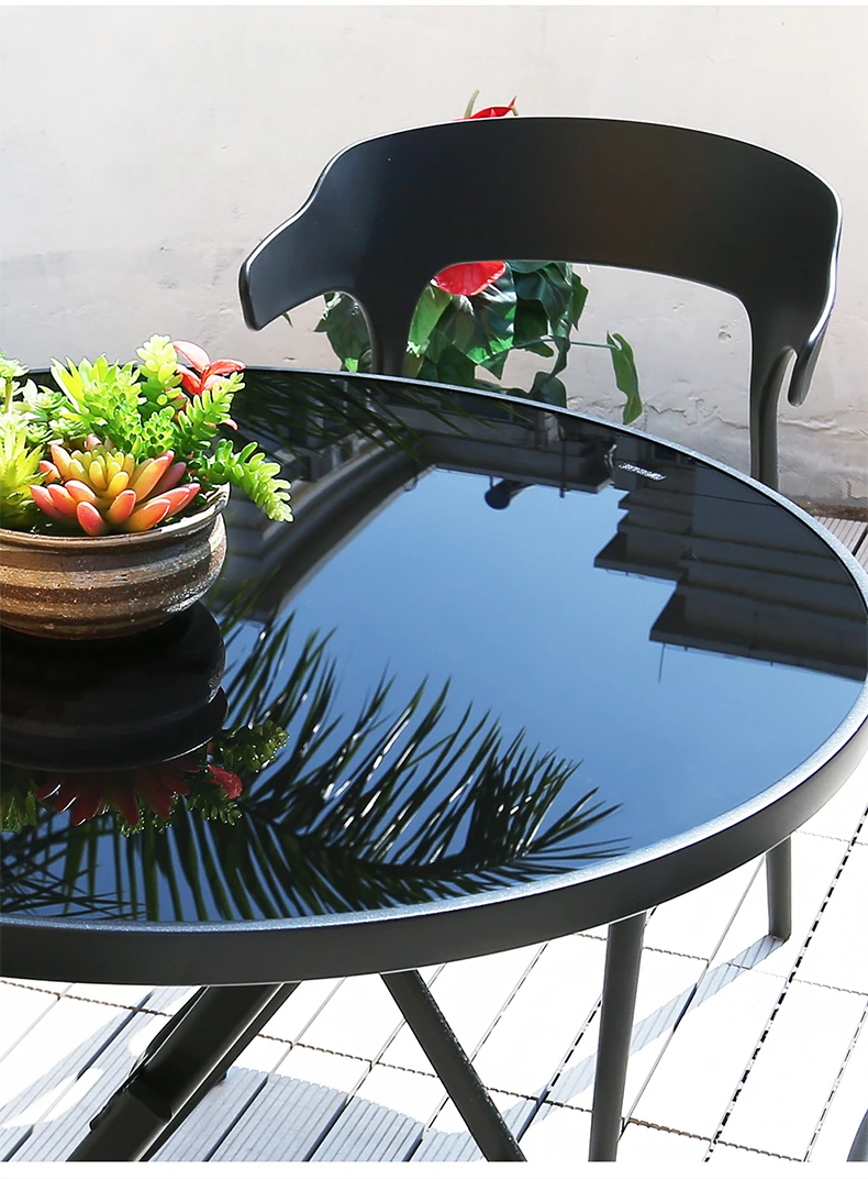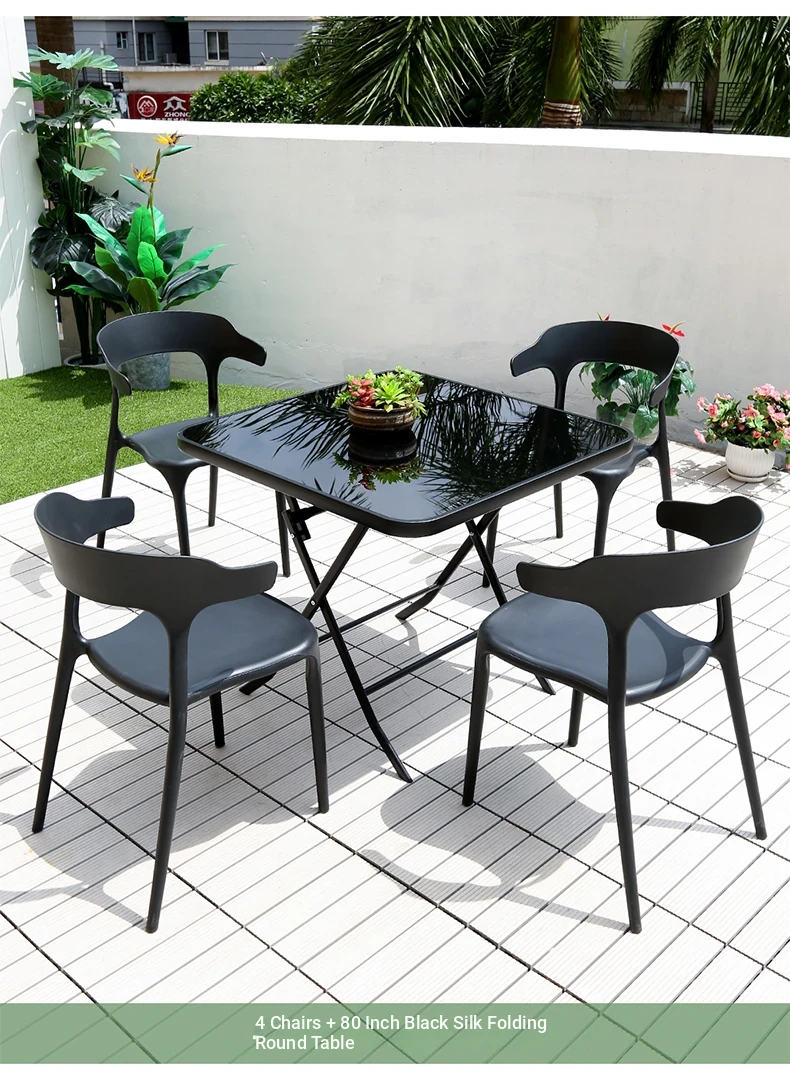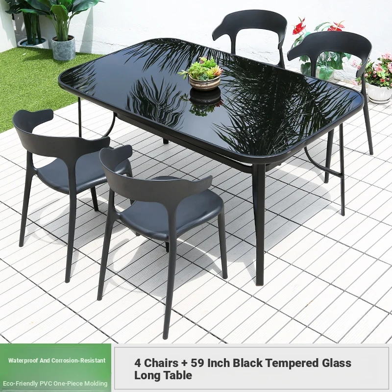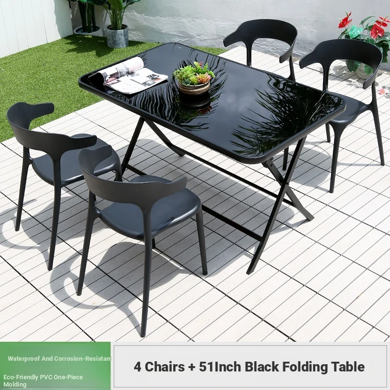 Violet(4 chairs +51.18in Foldable black glass long table)