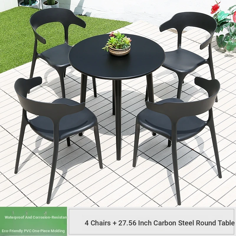 Deep Katchi cloth color(4 chairs +27.56in carbon steel round table)