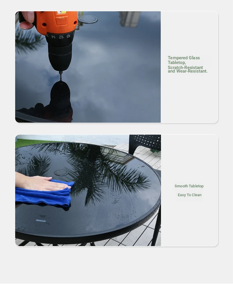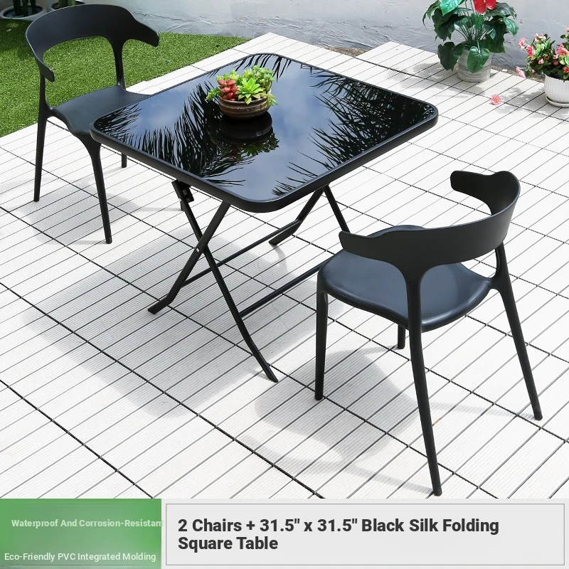 Light green(2 Chairs +31.50in*31.50in Foldable black glass square table)