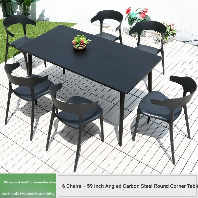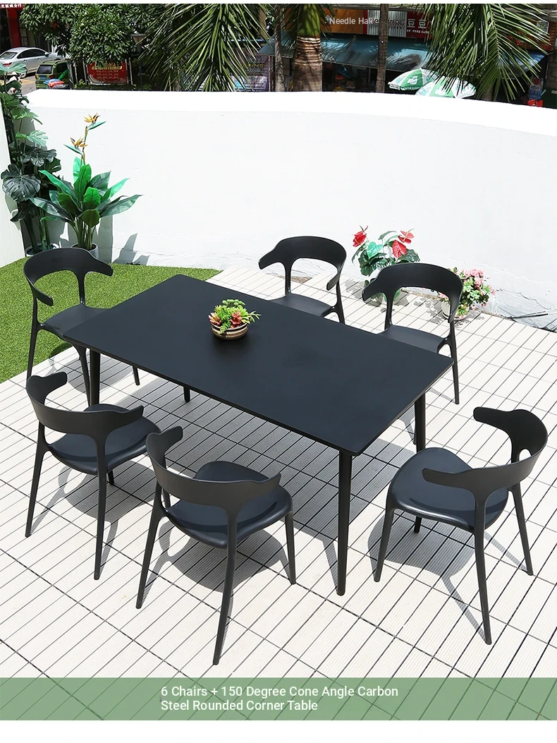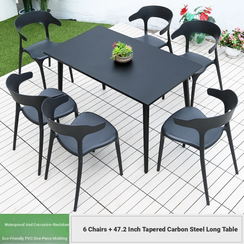 Blue(6 chairs +59.06in carbon steel cone foot table)