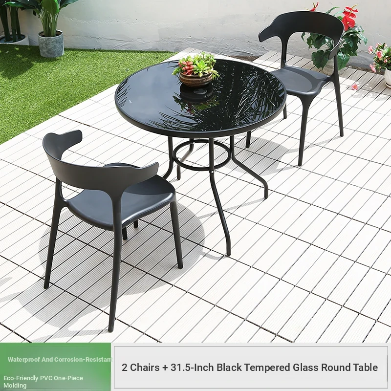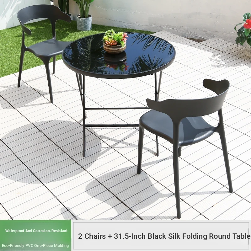 Light gray(2 Chairs +31.50in Foldable black glass round table)