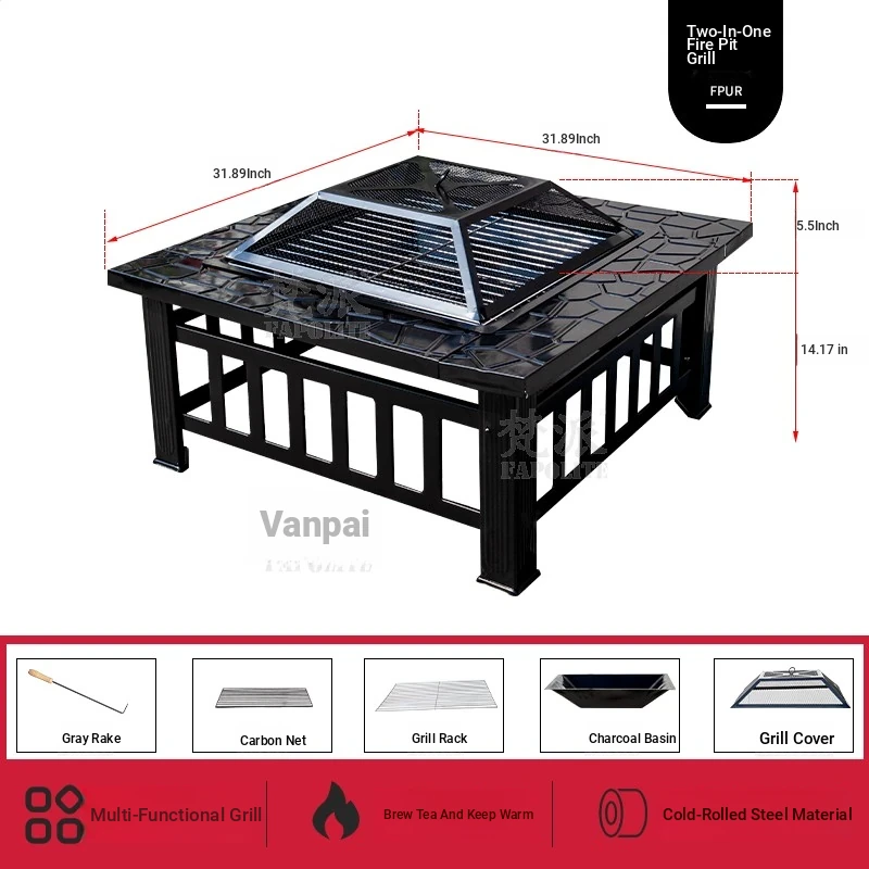 Upgraded large barbecue table [optional electric roast leg of lamb rack] + Rain cover