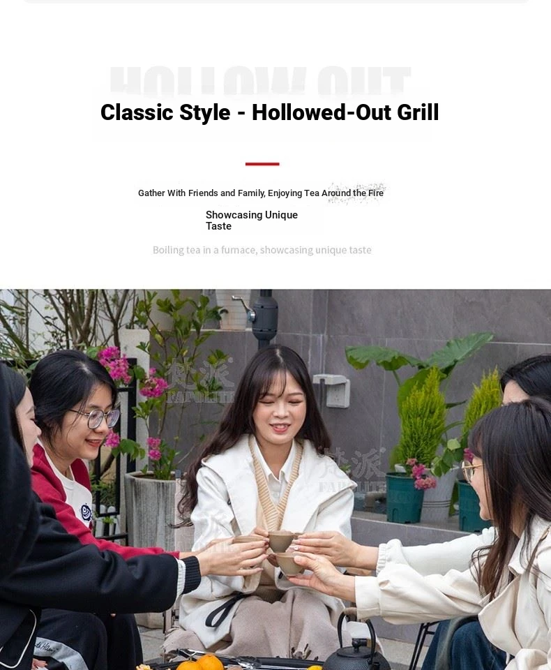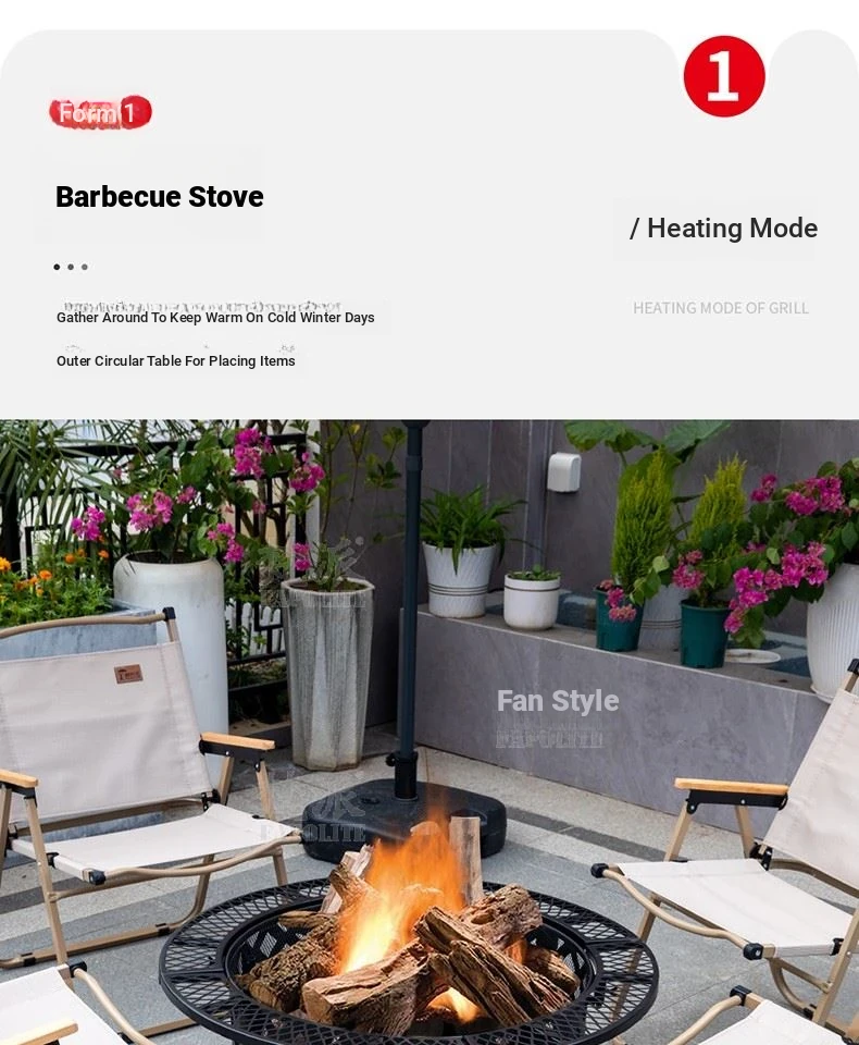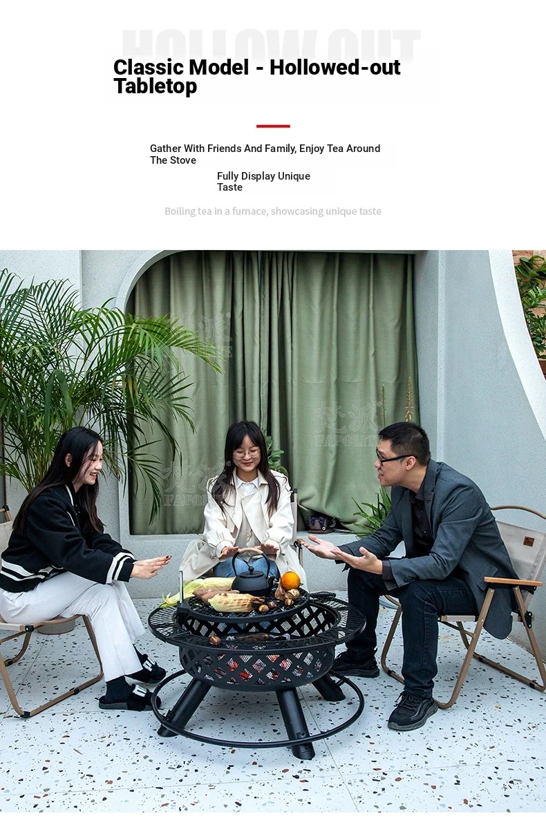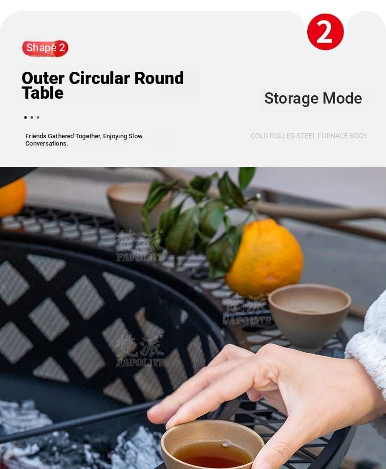 Square low-foot oven with four Foldable chairs