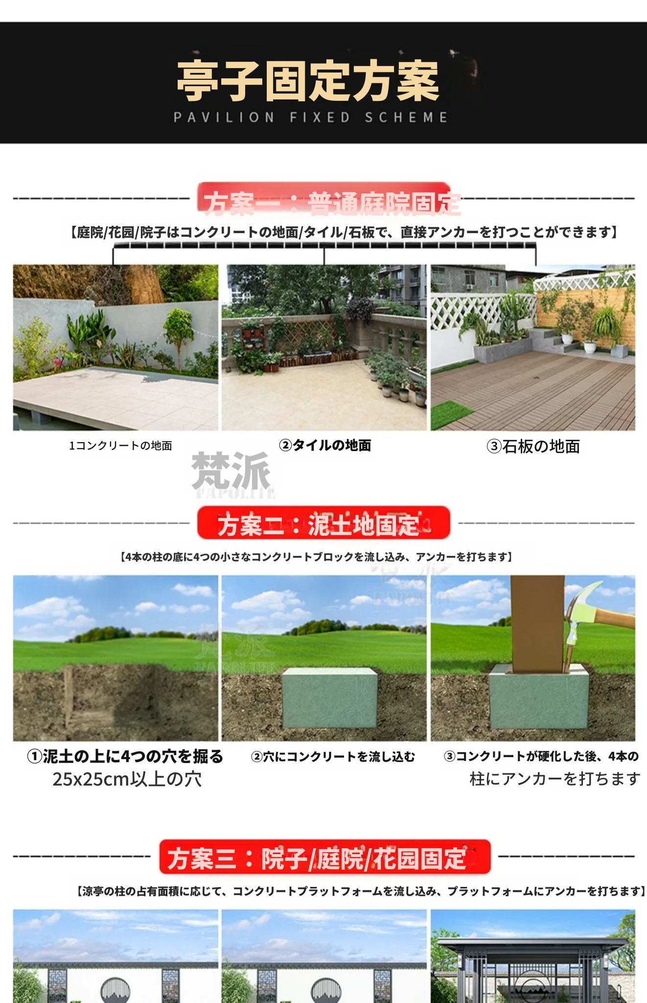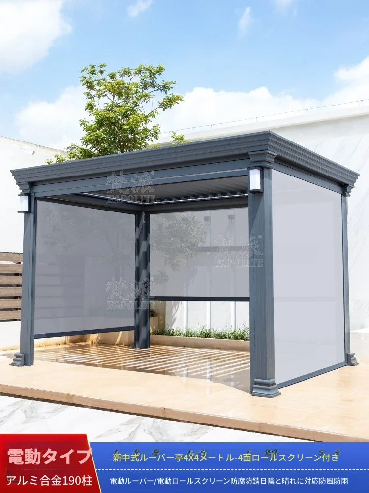 中式バイエティー亭-電動タイプ4X4メートル-四面ロールカーテン付き