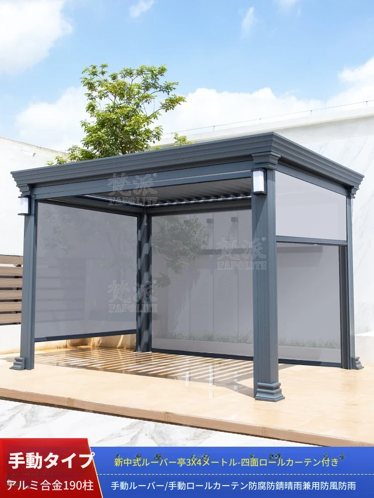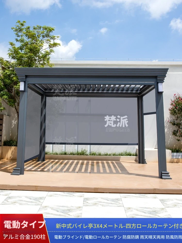 中式バイエティー亭-電動タイプ3X4メートル-四面ロールカーテン付き