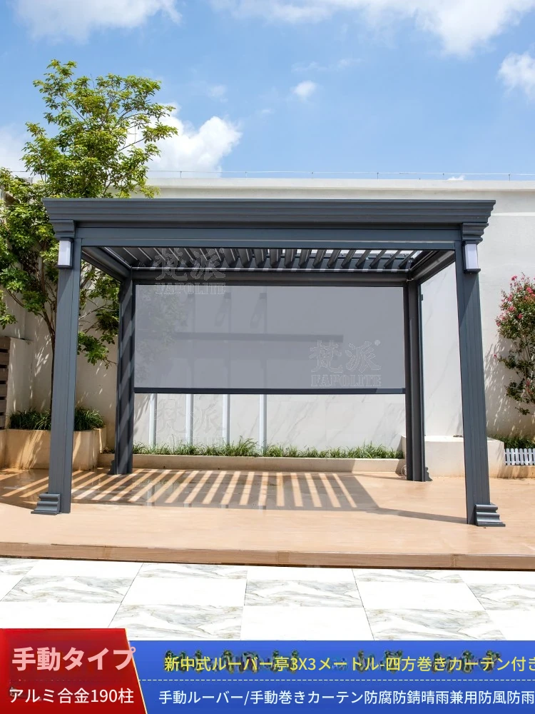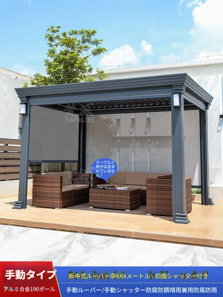 中式バイエティー亭-手動タイプ4X4メートル-四面ロールカーテン付き