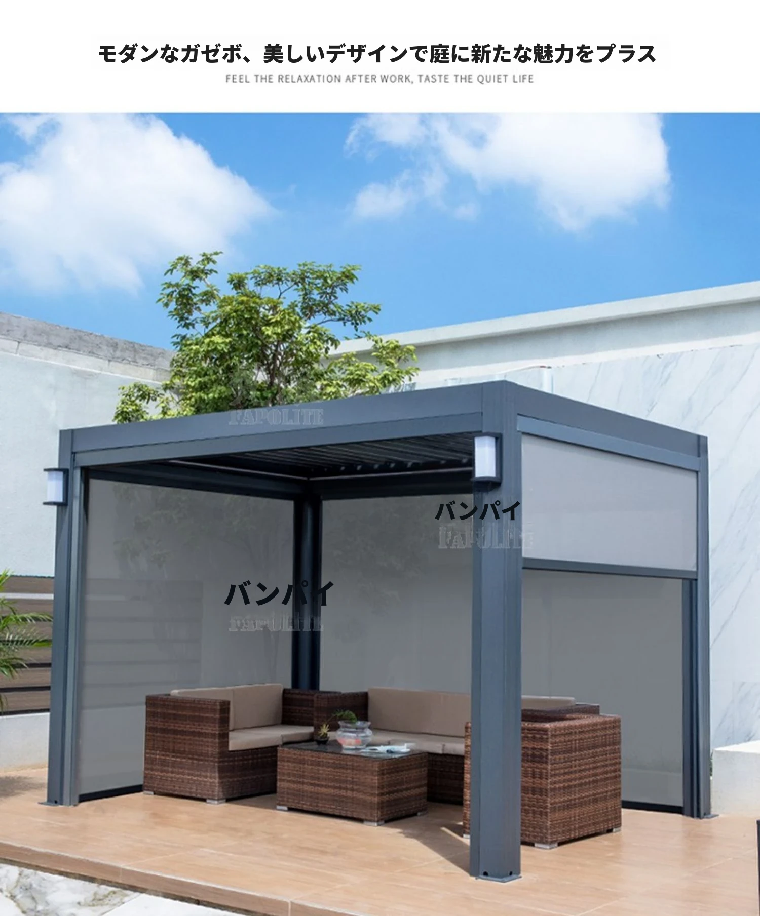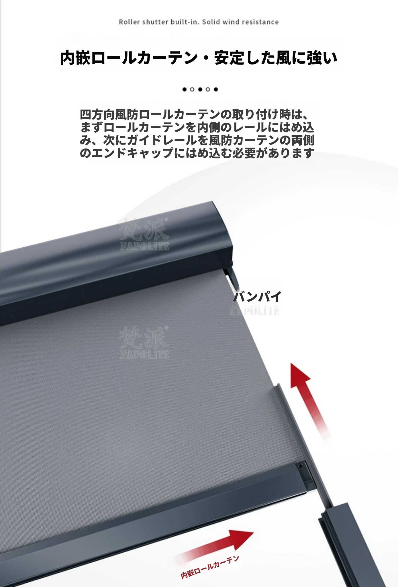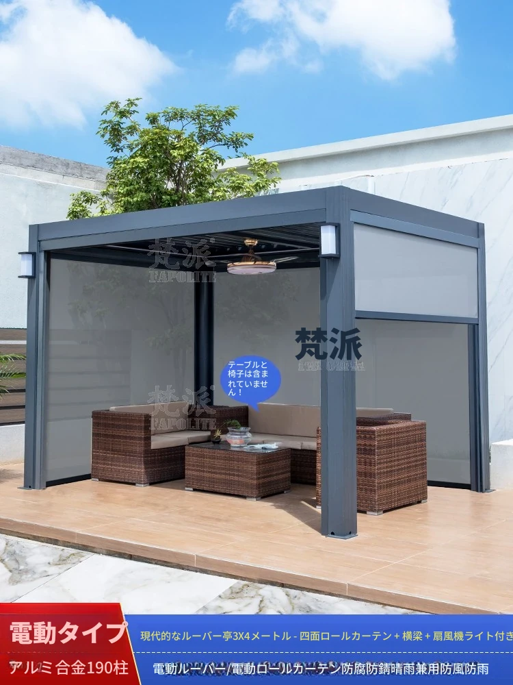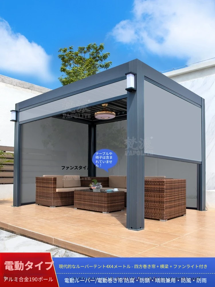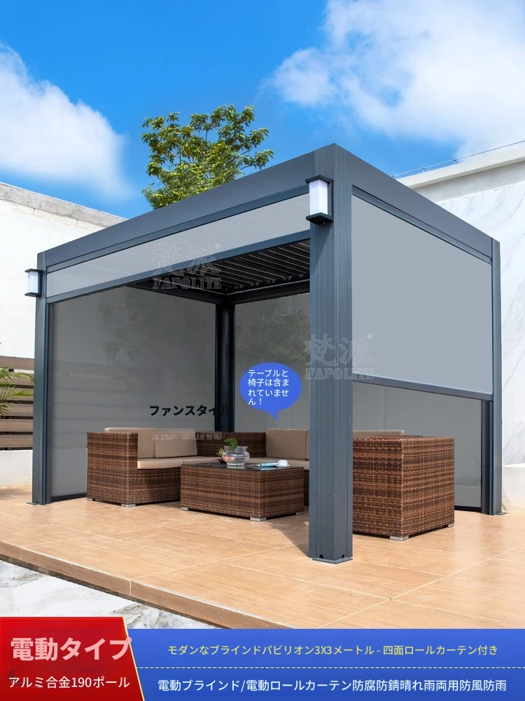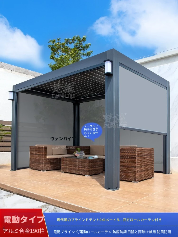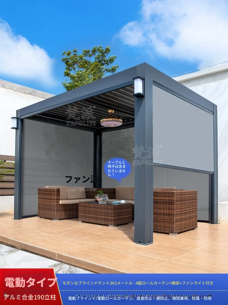現代バイエティー亭-電動タイプ3X3メートル-四面ロールカーテン付き