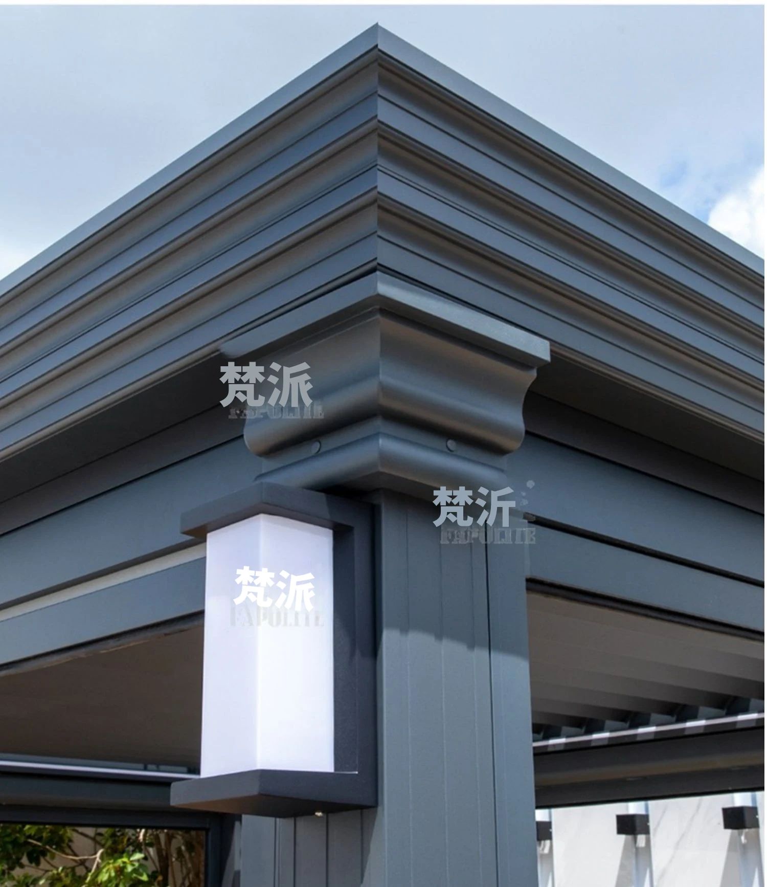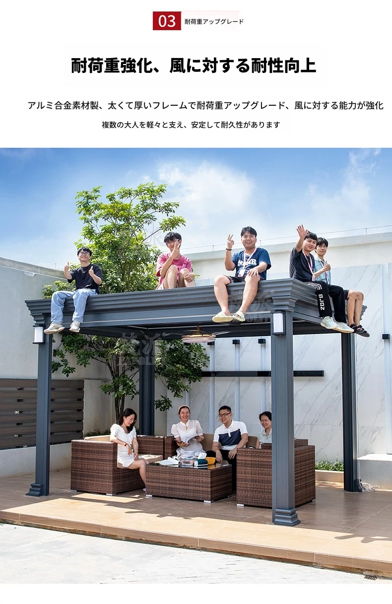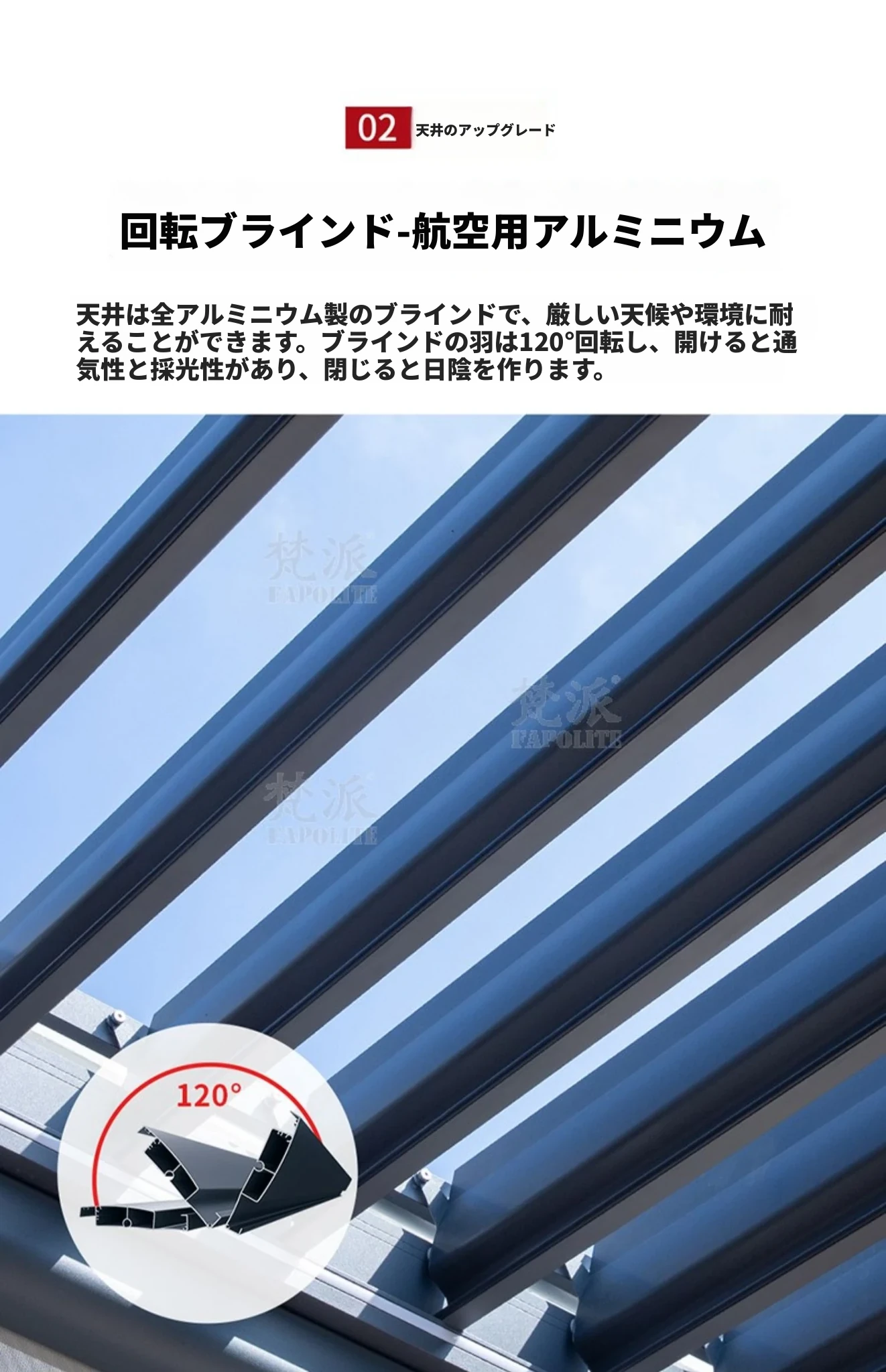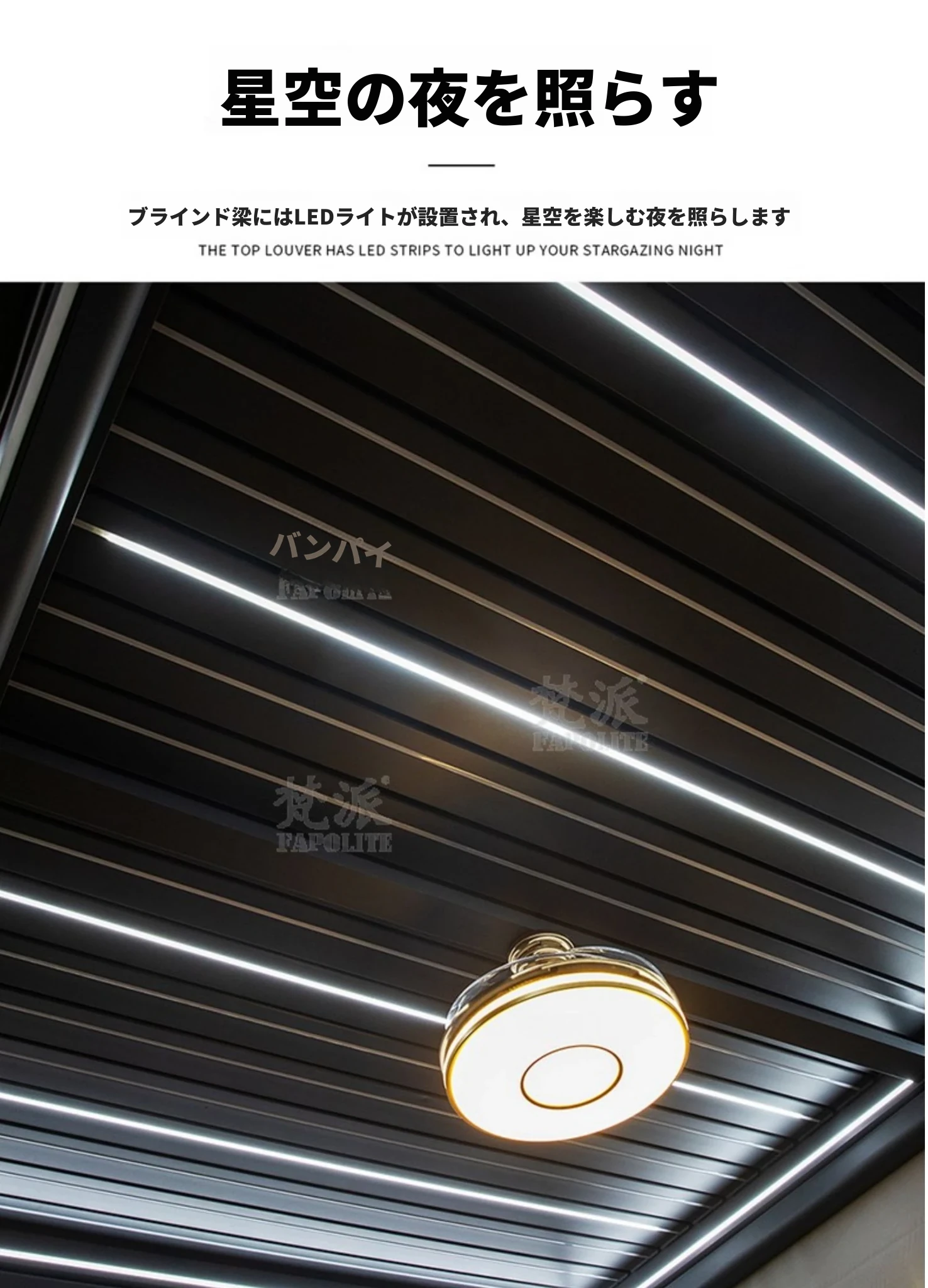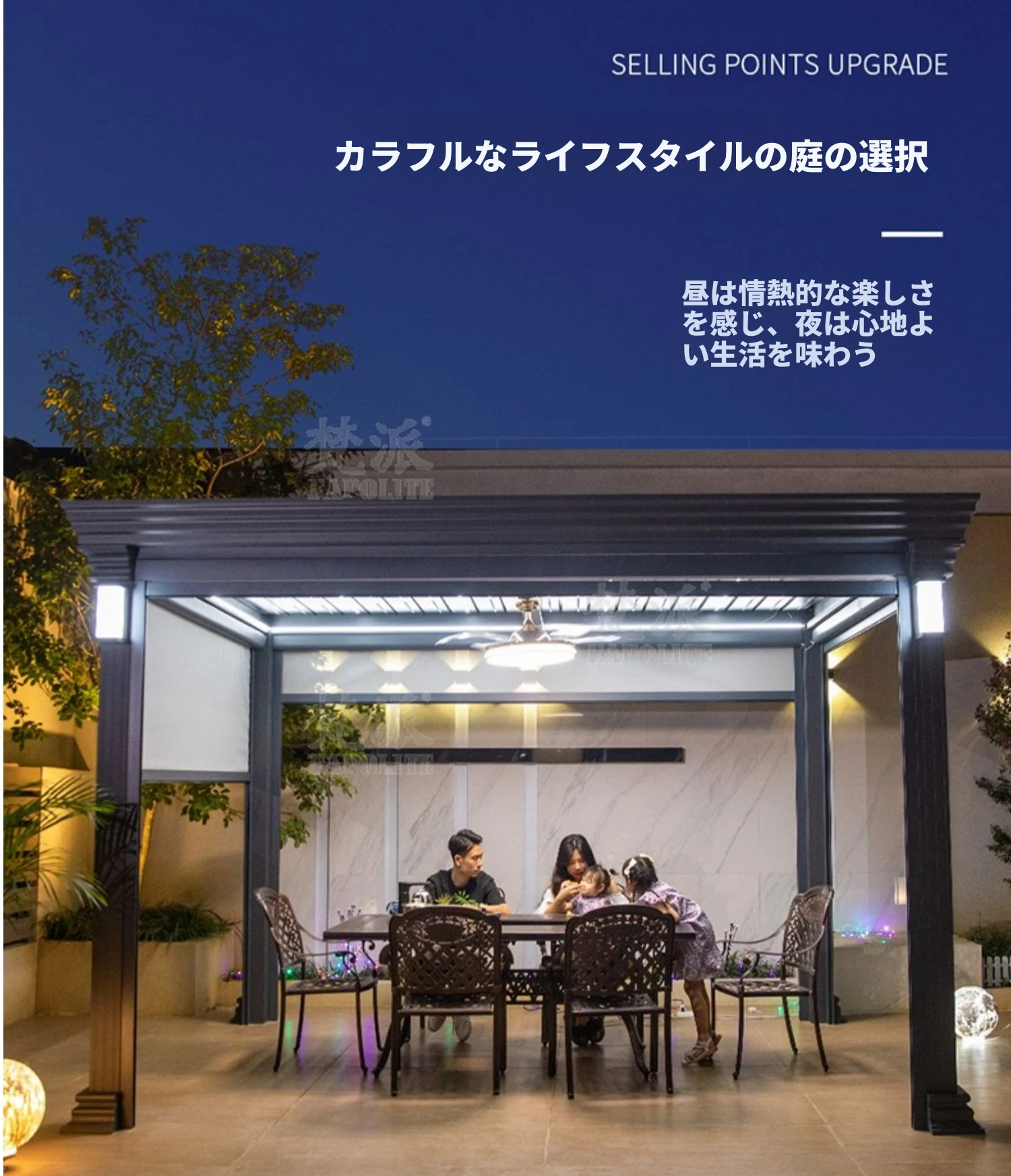 中式バイエティー亭-電動タイプ4X4メートル-四面ロールカーテン付き+横梁+ファンライト