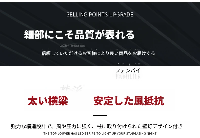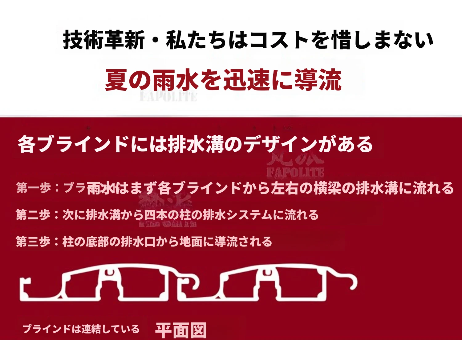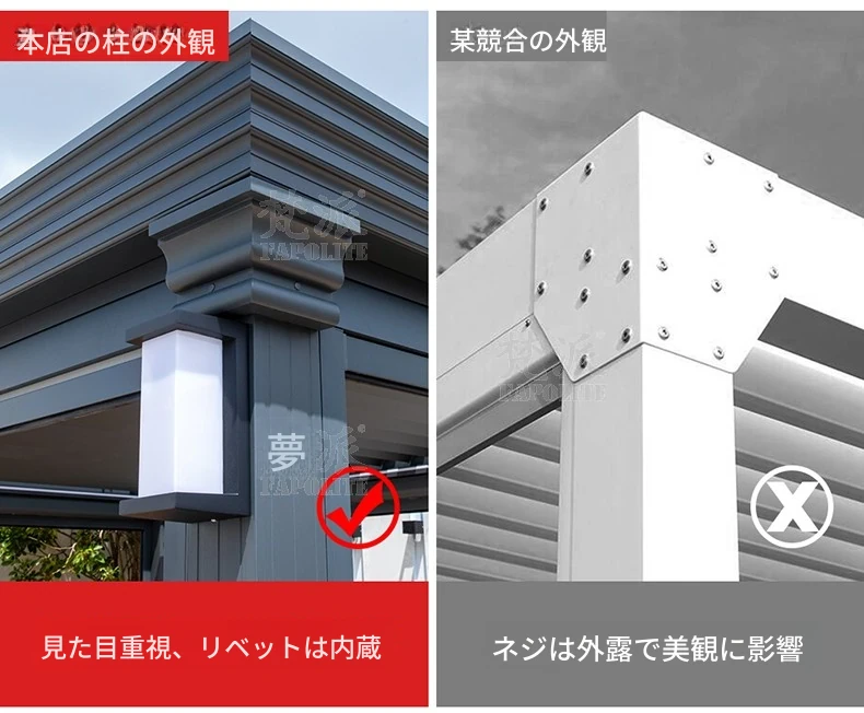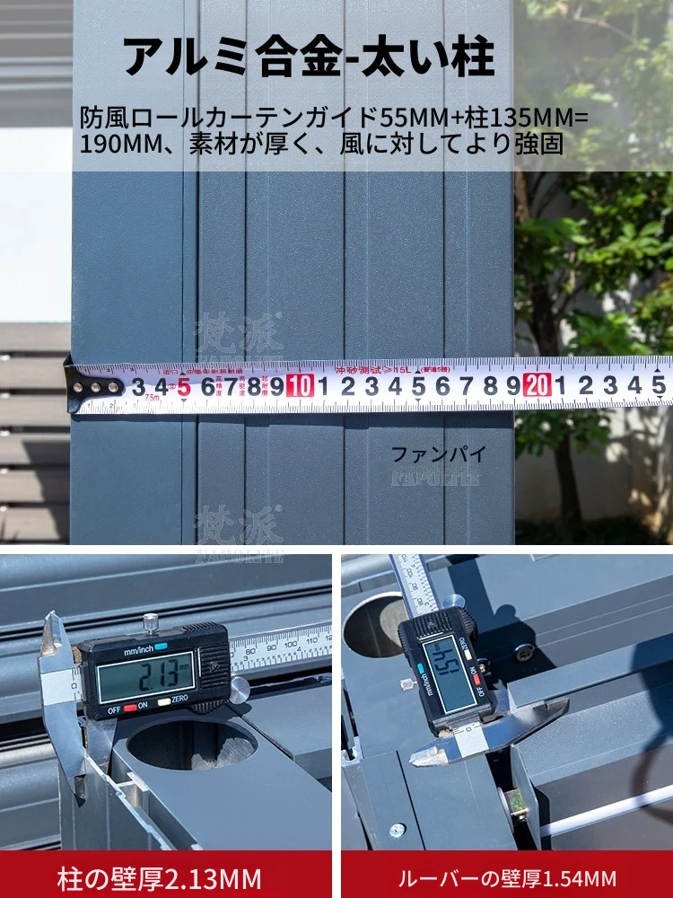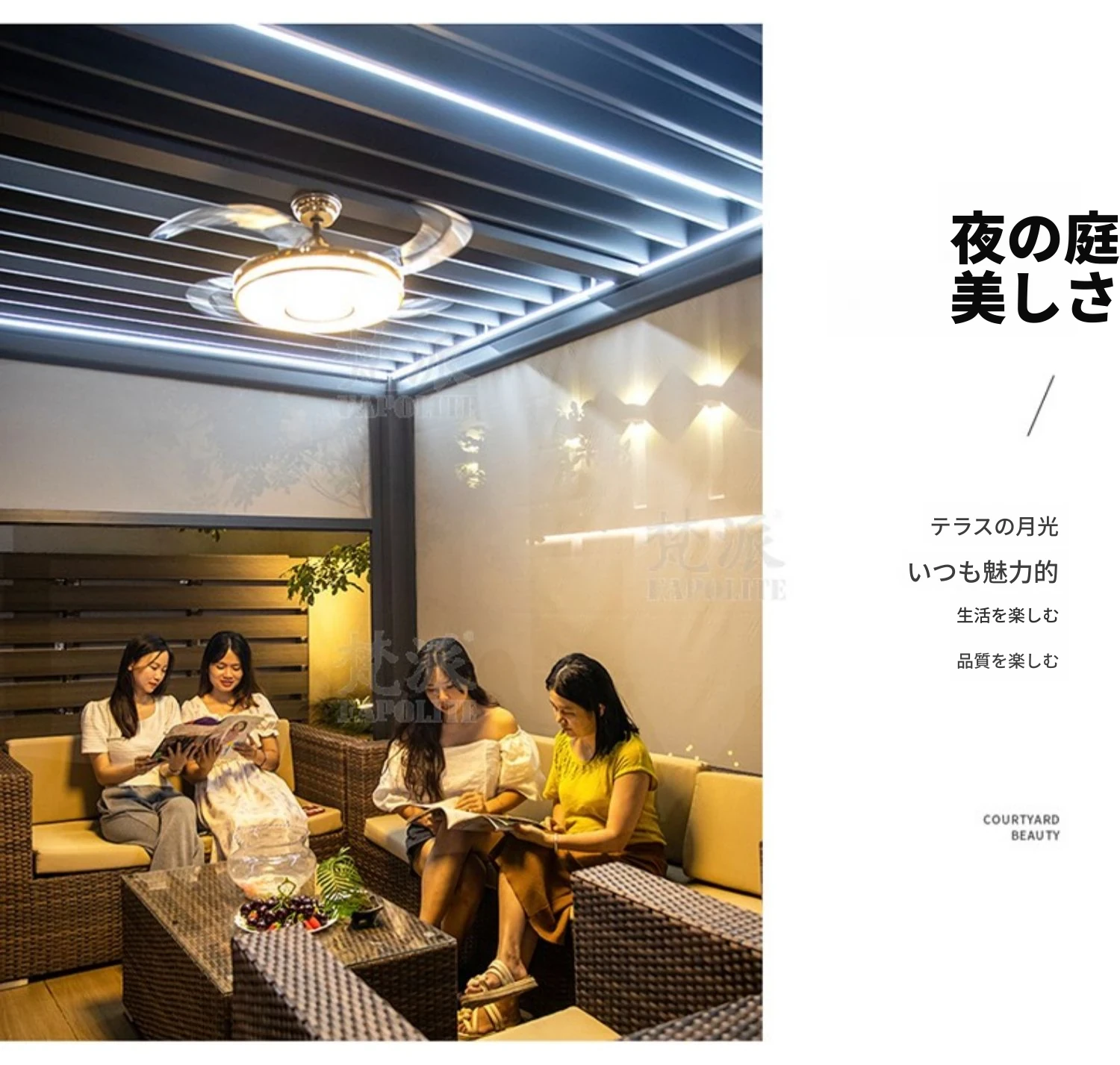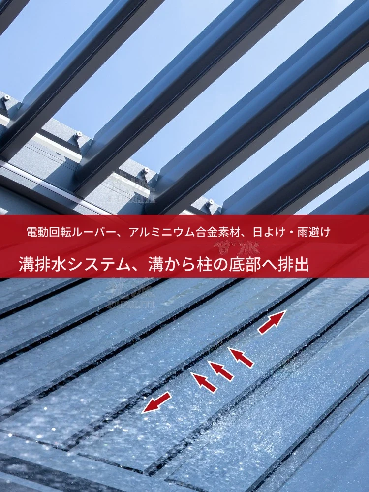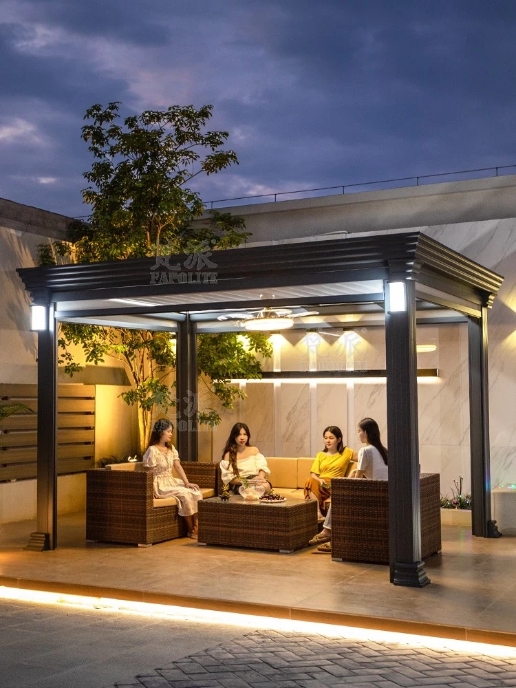 中式バイエティー亭-電動タイプ4X4メートル-四面ロールカーテン付き+横梁+ファンライト