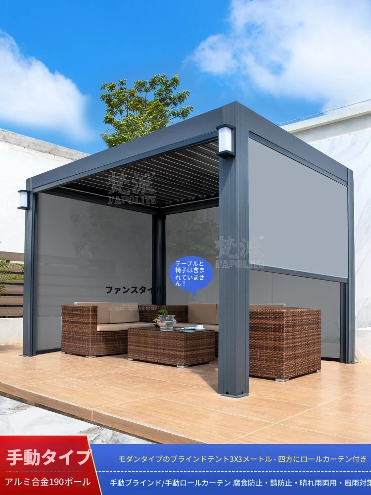現代バイエティー亭-手動タイプ3X3メートル-四面ロールカーテン付き