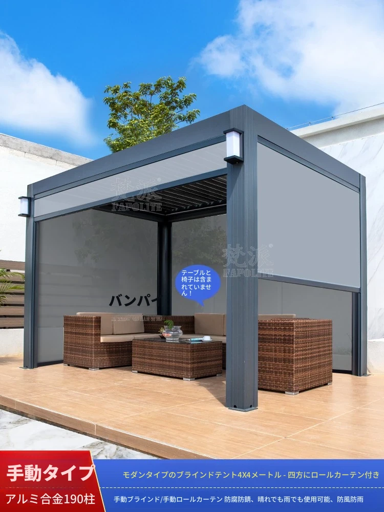 現代バイエティー亭-手動タイプ4X4メートル-四面ロールカーテン付き