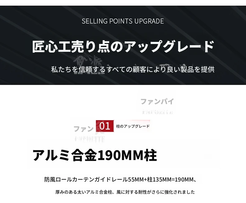 現代バイエティー亭-電動タイプ3X4メートル-四面ロールカーテン付き+横梁+ファンライト