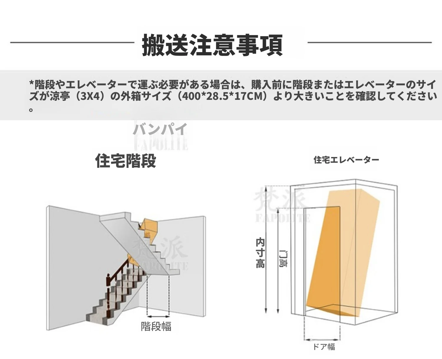 中式バイエティー亭-電動タイプ3X4メートル-四面ロールカーテン付き+横梁+ファンライト