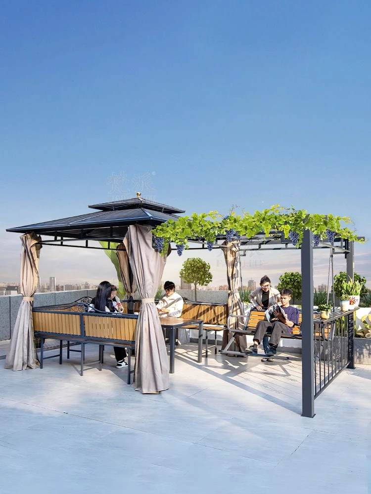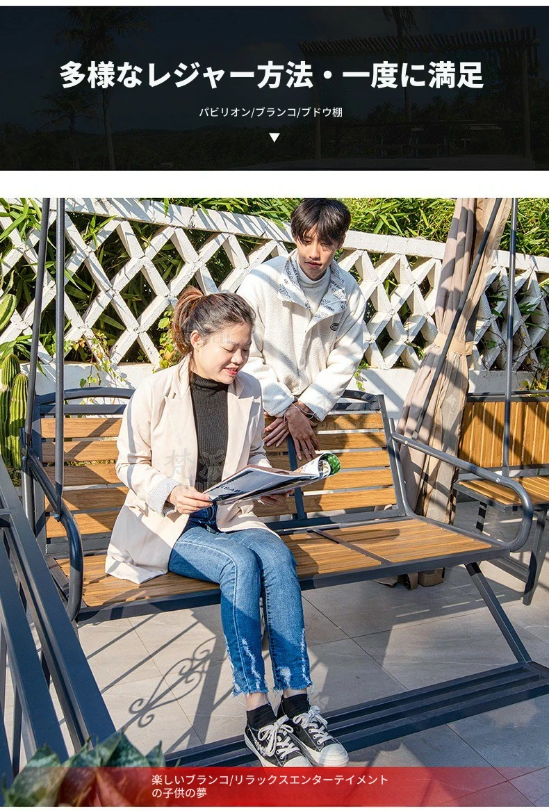 【占有面積4.65x2.5メートル】ぶどう棚テント+3座板+テーブル+3人用ハンモック+囲い布のカーテン