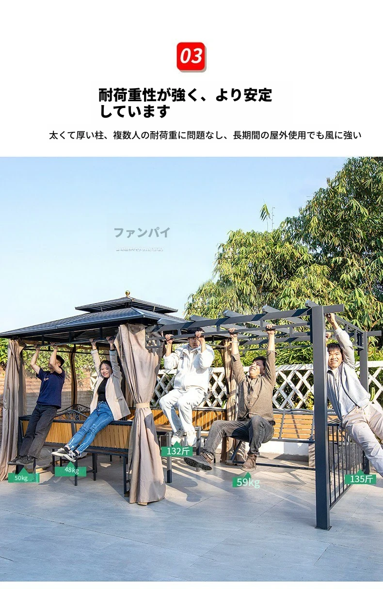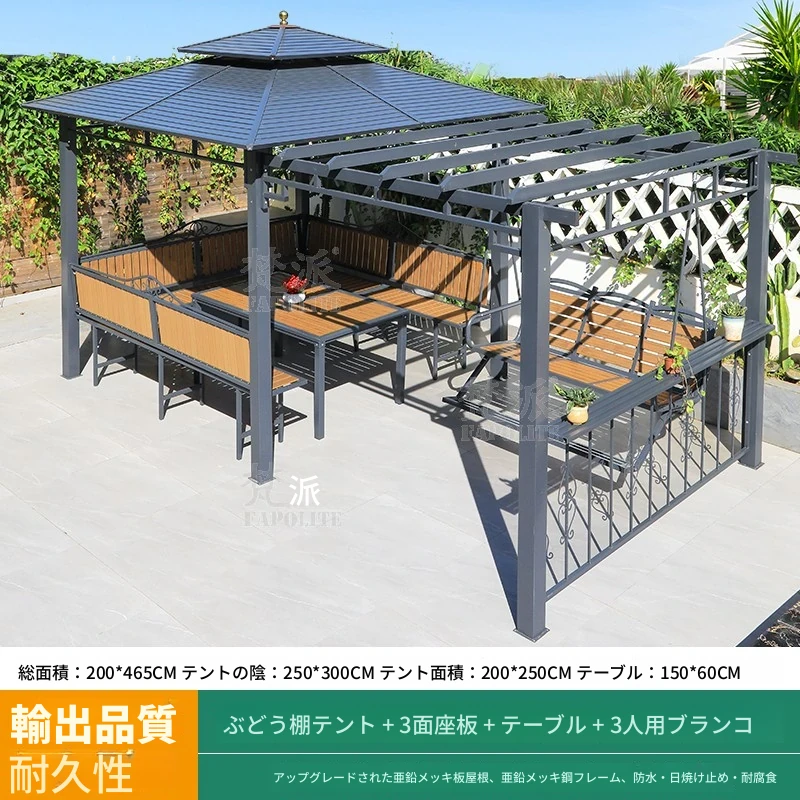 【占有面積4.65x2.5メートル】ぶどう棚テント+3面の座板+テーブル+3人用ハンモック