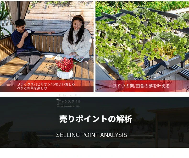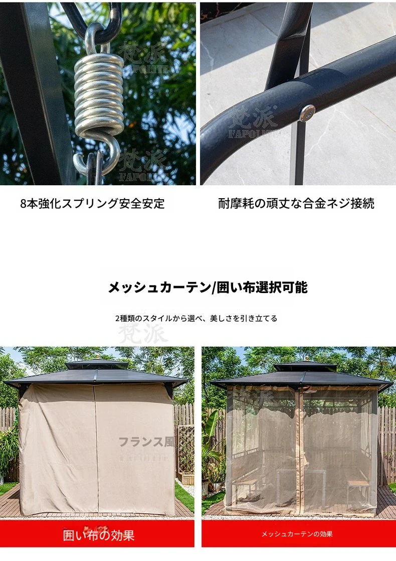 【占有面積4.15X2メートル】ぶどう棚テント+3面の座板+テーブル+3人用ハンモック+囲い布のカーテン