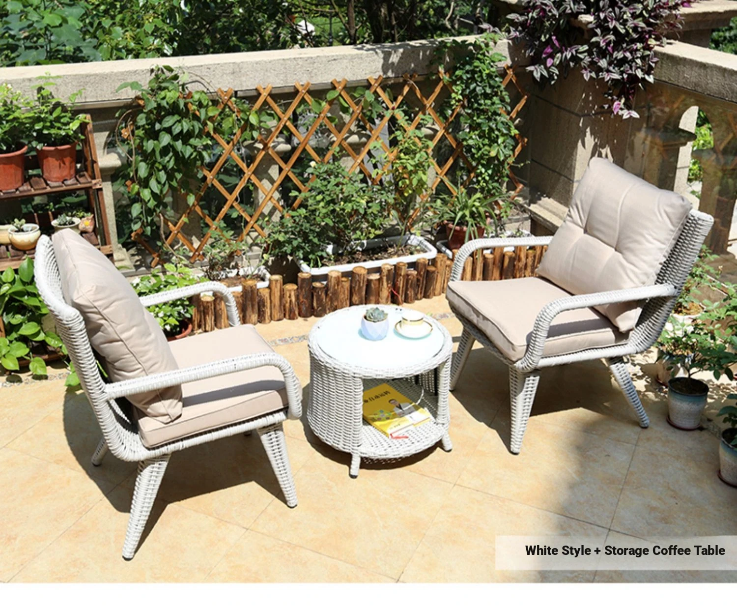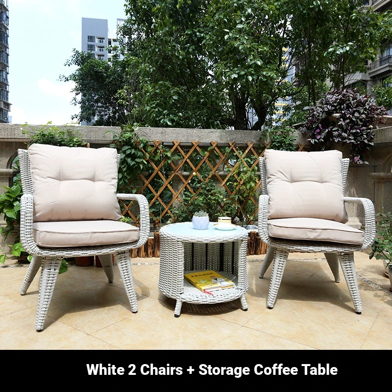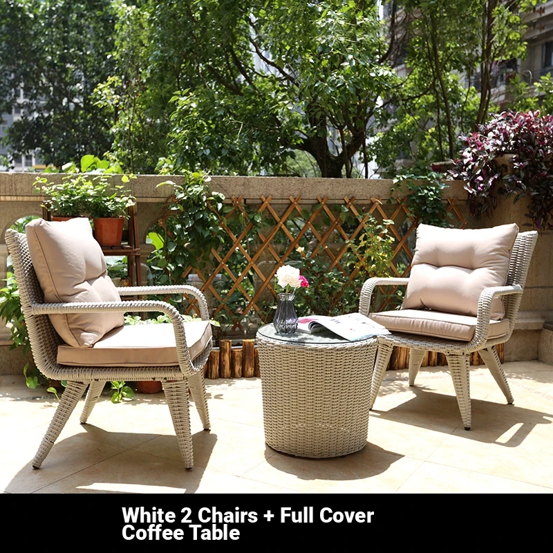 [Send cushion pillow] White 2 chair + All-inclusive tea table([Send cushion pillow] White 2 chair + All-inclusive tea table)