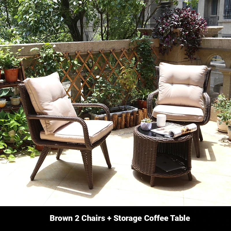 [Send cushion pillow] Brown 2 chair + storage tea table([Send cushion pillow] Brown 2 chair + storage tea table)