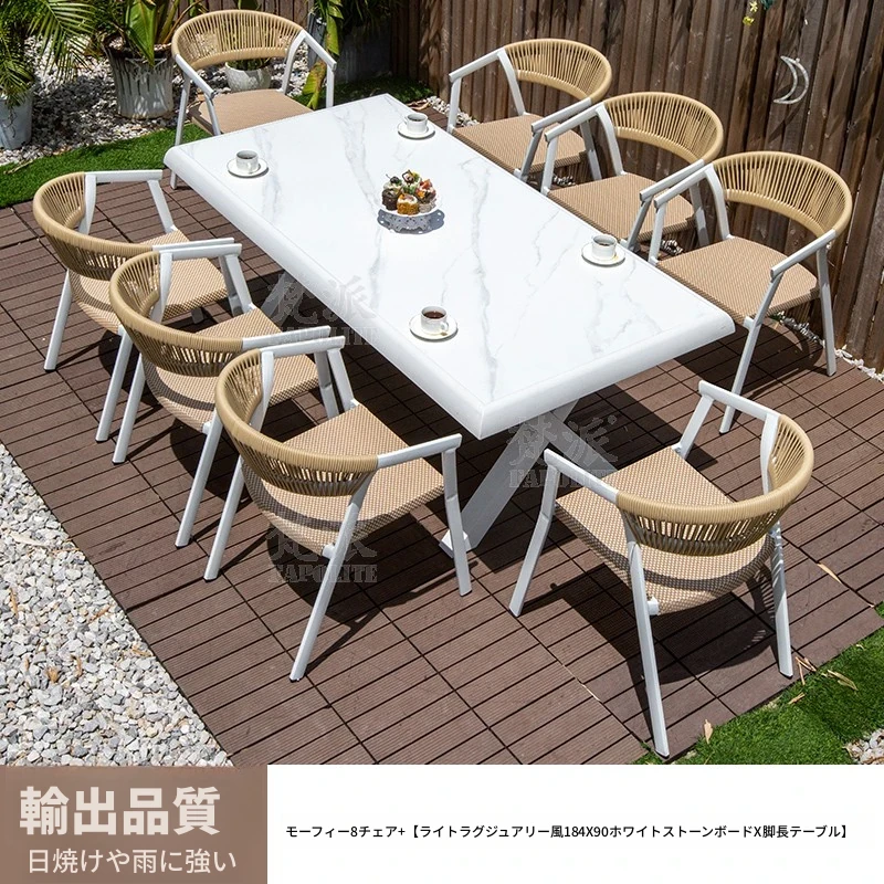 モーフィ8椅+【全アルミ直角180X90純白ストーンロングテーブル】